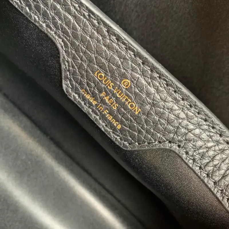 M23943 Black Medium This Capucines Medium Bag features a delicate Monogram flower on the handle, which adds a three-dimensional touch to the LV logo, adding a touch of brilliance to the feminine design. The full-grain Taurillon leather creates a compact shape that can accommodate a smartphone, a short wallet and other small items. 31.5 x 20 x 11 cm (length x height x width)