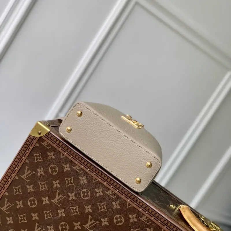 M23943 Grey Mini Capucines Mini Handbag The handle is infused with delicate Monogram flowers. The three-dimensional sense of the LV logo is presented with delicate brushstrokes, which injects dazzling brilliance into the soft design. The full-grain Taurillon leather is shaped into a compact structure that can accommodate a smartphone, a short wallet and other small items. 21??14??8 cm (length x height x width)