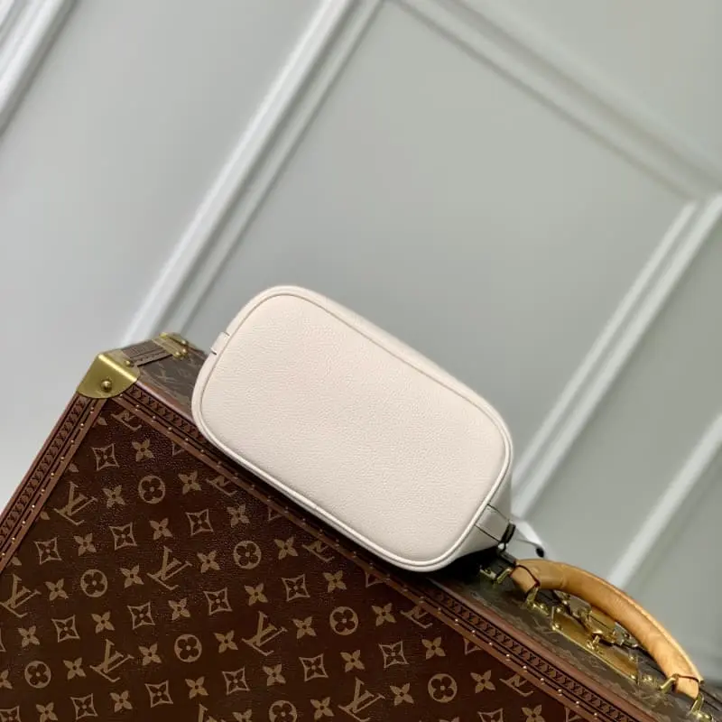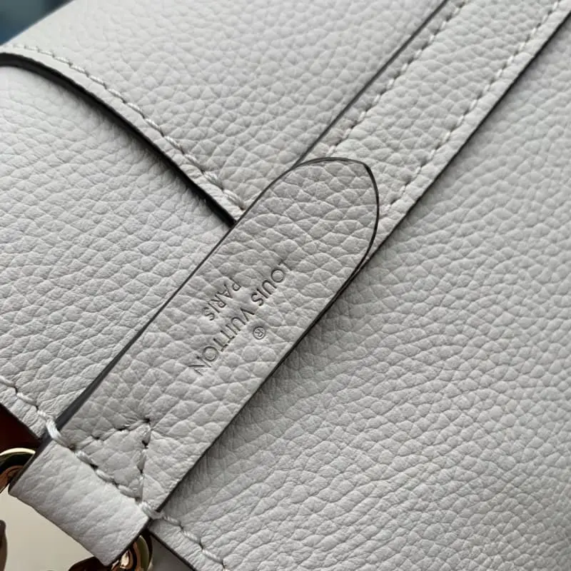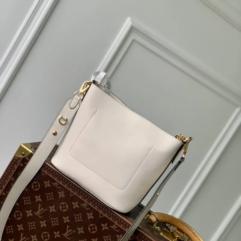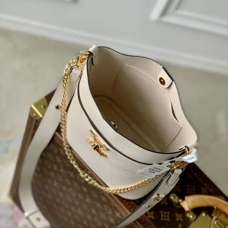 The M24006 white Lock and Walk bucket bag is made of lightweight and comfortable grained cowhide leather, calmly interpreting French style. The LV twist lock opens the large front compartment for easy access to the things you need to carry. The detachable shoulder strap and chain handle allow for a variety of carrying methods. 20 x 20.5 x 12 cm (length x height x width)