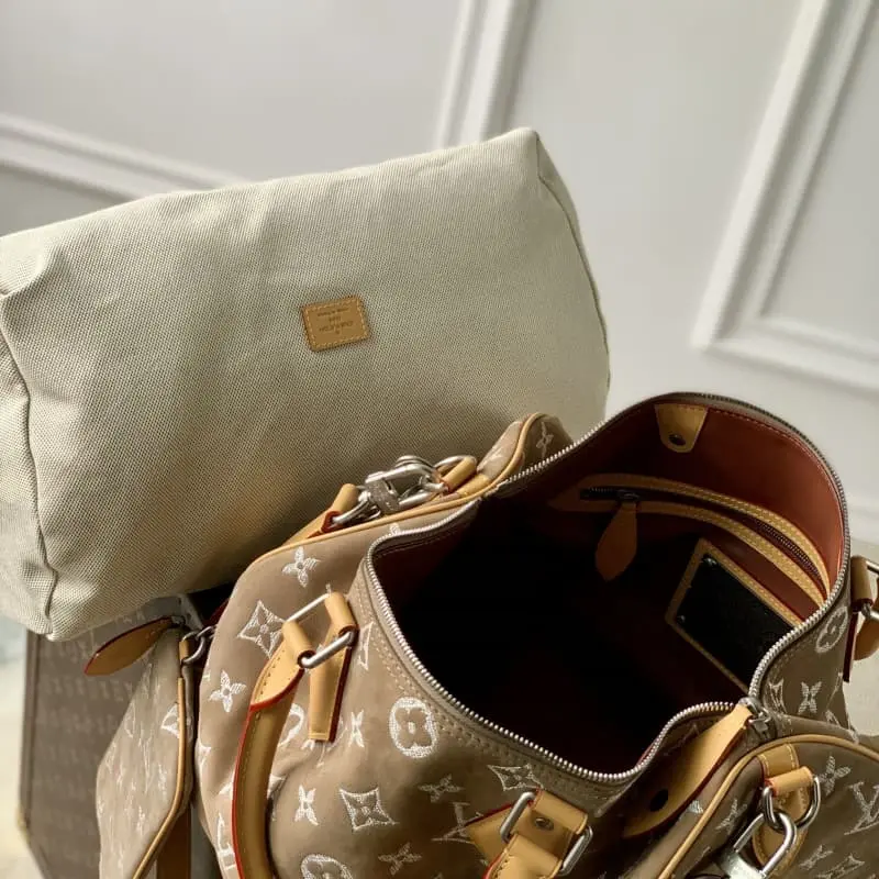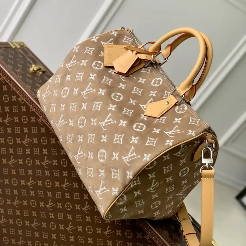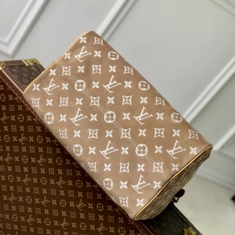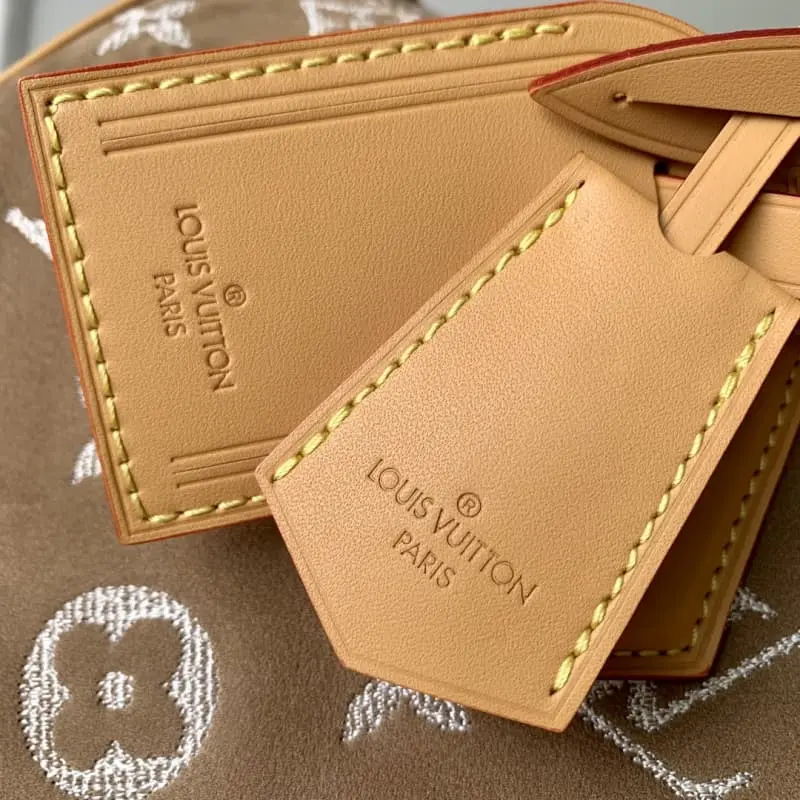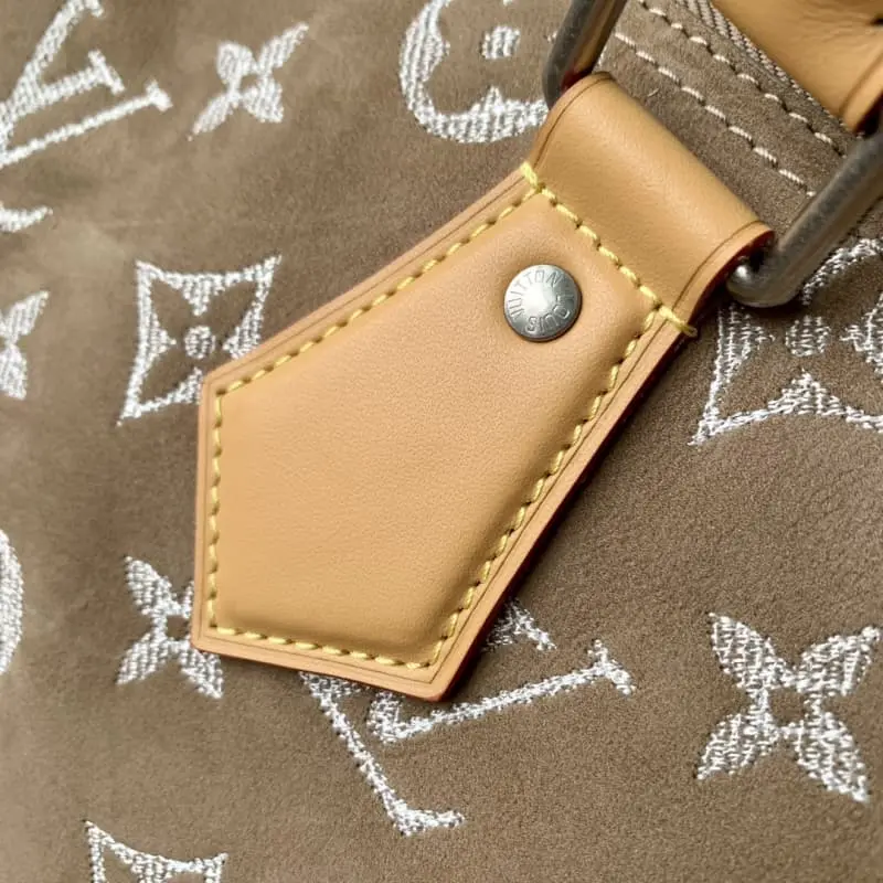 M24430 Apricot (Nubuck) This Speedy P9 Bandouli??re 40 Monogram Leather handbag is made of soft grained cowhide with sheepskin lining. The silk-screened Monogram pattern presents a blurred canvas print that expresses the creative director Pharrell Williams’s new season ingenuity. Size: 40 x 26 x 23 cm (length x height x width)