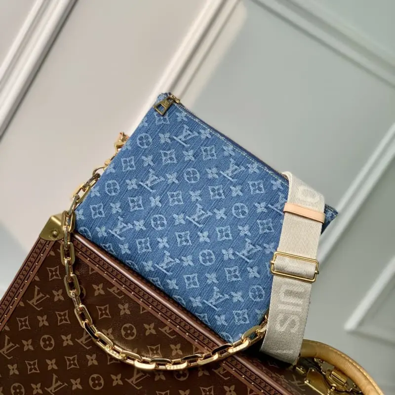 The original Coussin small handbag M24564 is made of new season cotton denim and has a unique look and feel through bleaching and sand washing. It is equipped with a detachable thick chain with inscription pattern and a wide fabric shoulder strap, making the carrying experience more comfortable. 26.0 x 20.0 x 12.0 cm (length x height x width)