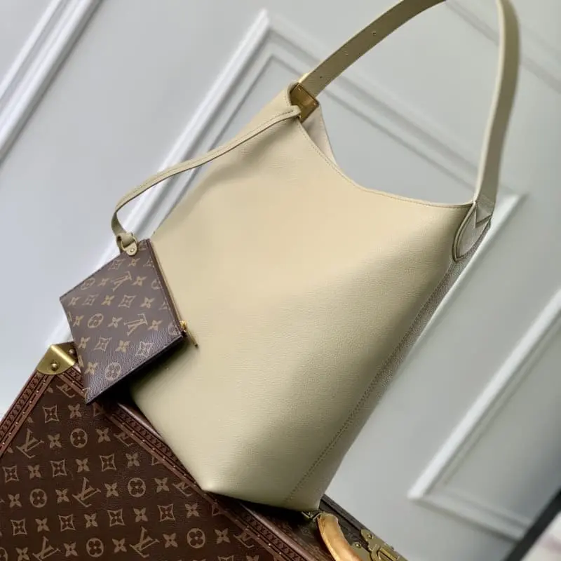 M24988 Green This Low Key Hobo medium handbag is made of smooth cowhide leather and suede cowhide leather lining to create a graceful design with an adjustable shoulder strap to achieve the switch between hand-held, shoulder and crossbody. The detachable Monogram coated canvas zipper bag inside is convenient for storing valuables and can also be used as a clutch. 35 x 18 x 31 cm (height x width x length)