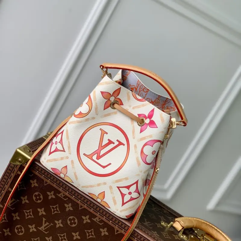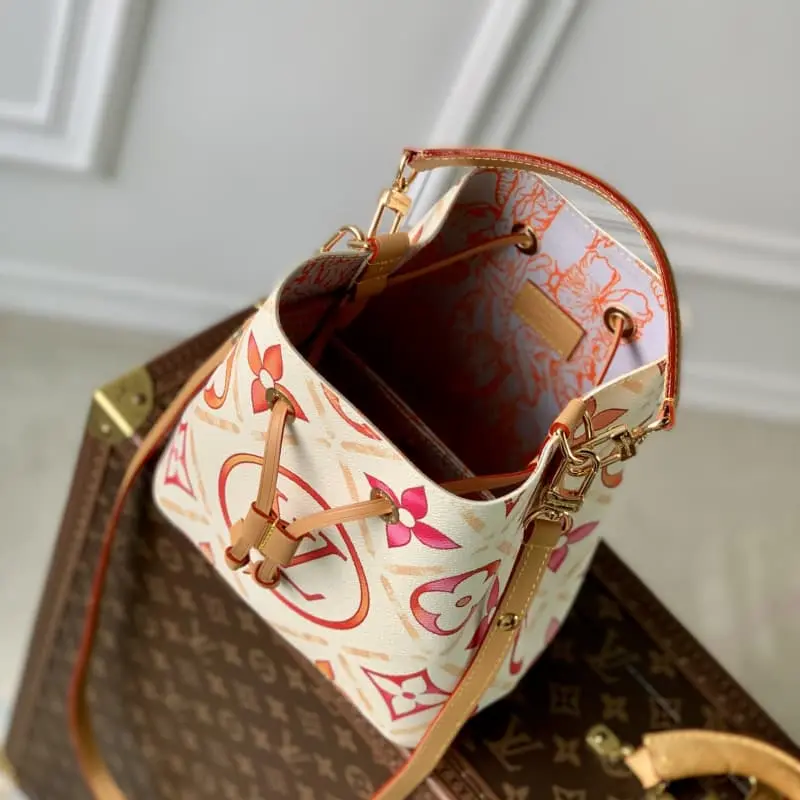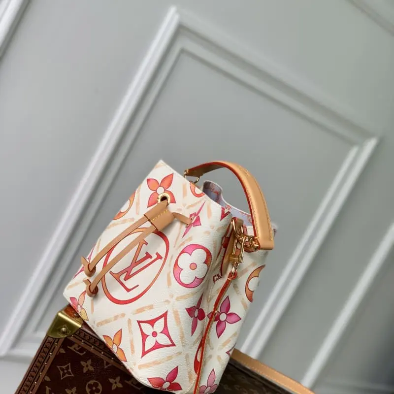 M25315 This N??ono?? BB bag is made of Monogram Tiles coated canvas, with the pastel Monogram pattern embracing the central LV Circle logo and the printed fabric lining. The exquisite bucket bag silhouette can be easily carried by hand or on the shoulder. The gift box packaging of this product may be reasonably adjusted according to stock conditions and may be different from the packaging style displayed on this product page. Please refer to the actual gift box packaging style received. 20 x 20 x 13 cm (length x height x width)