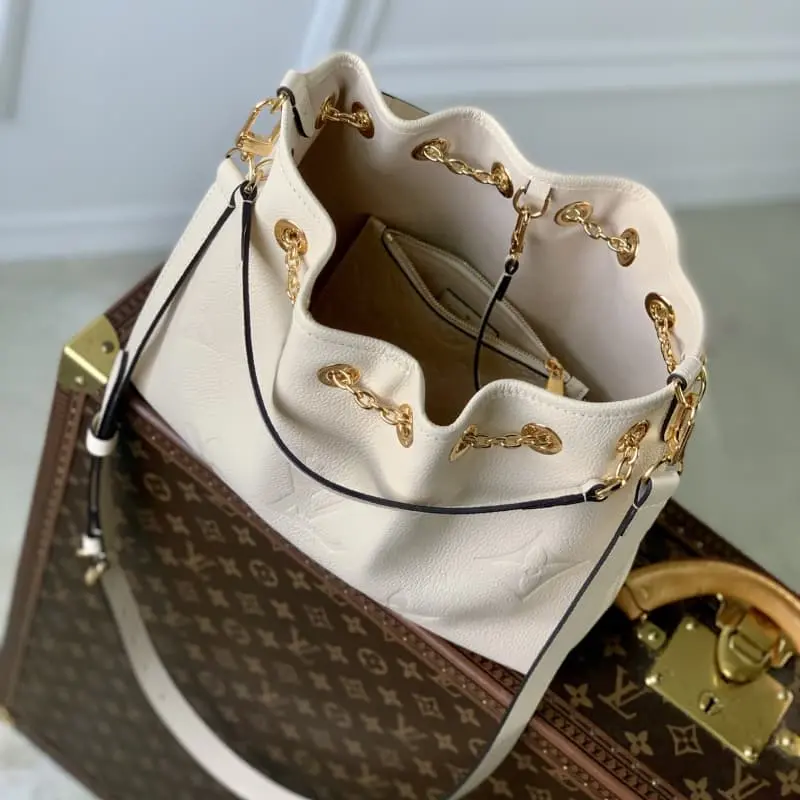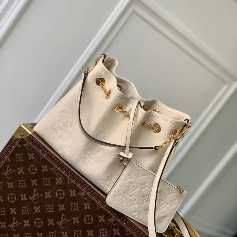 M25453 White Summer Bundle handbag from the D??grad?? series of new drawstring design. Monogram Empreinte embossed leather body presents gradient tones to brighten up any seasonal look. Double handles and detachable crossbody shoulder strap provide a variety of fashionable carrying methods to achieve day and night travel companion. 28.0 x 20.0 x 11.5 cm (length x height x width)