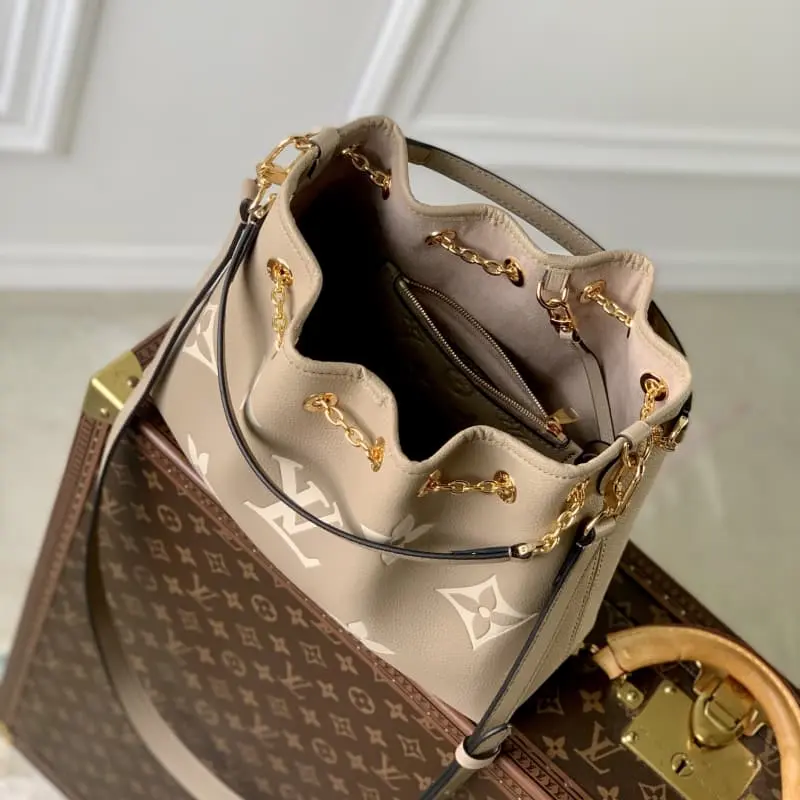 M25453 Grey This Summer Bundle handbag is a new drawstring design from the D??grad?? series. The Monogram Empreinte embossed leather body presents gradient tones to brighten up any seasonal look. The double handles and detachable crossbody shoulder strap provide a variety of fashionable carrying methods to achieve a good companion for day and night travel. 28.0 x 20.0 x 11.5 cm (length x height x width)