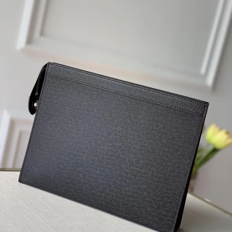 M30450Pochette Voyage Clutch Made of dark-dyed Taga leather, with metal LV letters on the lower right corner. The interior is neatly designed with patch pockets and card slots to store what you need. It can be put into a handbag or used as a folder. Dimensions: 27.0 x 21.0 x 3.0 cm