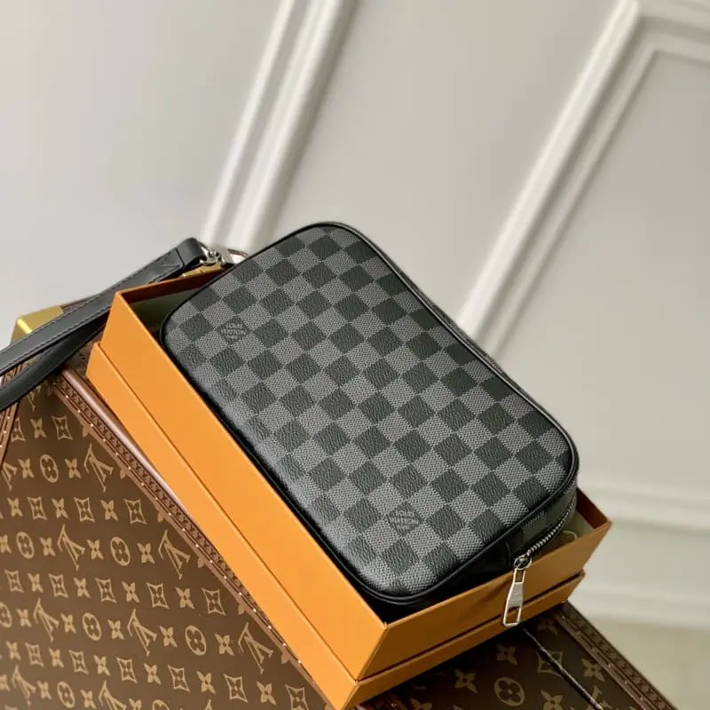 M41664 Black Pochette Kasai Clutch is made of fine Taga leather to create a compact structure and the LV letters are marked on the bottom corners. There are patch pockets and card slots inside to ensure that you can carry it neatly and orderly. The leather wristband allows for multiple ways of carrying. Dimensions 25 x 15.5 x 6.5 cm (length x height x width)