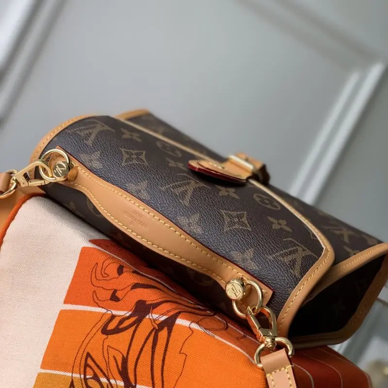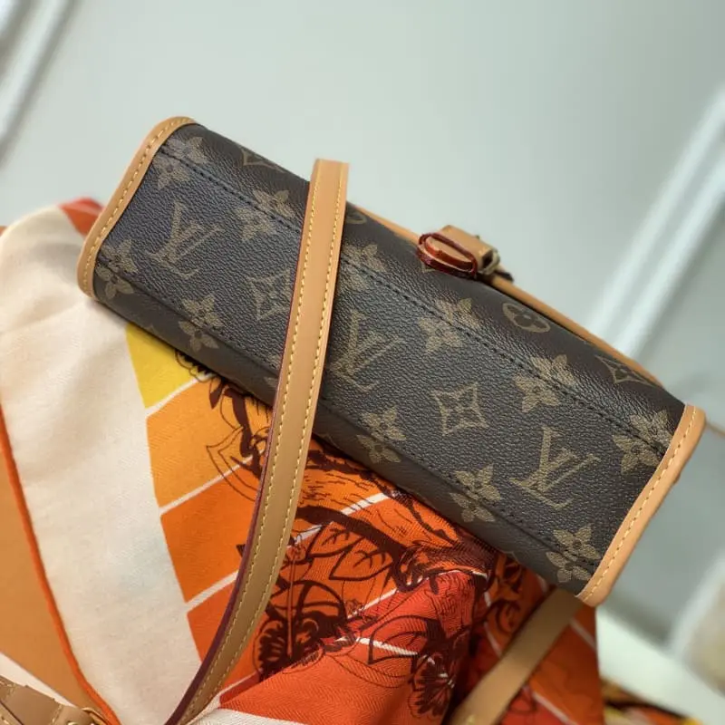 M44919 This retro and fashionable LV Ivy handbag is the focus of Nicolas Ghesqui??re’s 2020 early spring fashion show. The design is inspired by the Bel Air handbag in 1994. It is made of Monogram canvas and natural cowhide, exuding a “retro schoolbag” style. The leather closure is also decorated with fashionable new details such as the LV logo. In addition to being carried by hand like at the fashion show, it can also be carried hands-free using the shoulder strap. Details 23.5 x 18.0 x 9.0 cm