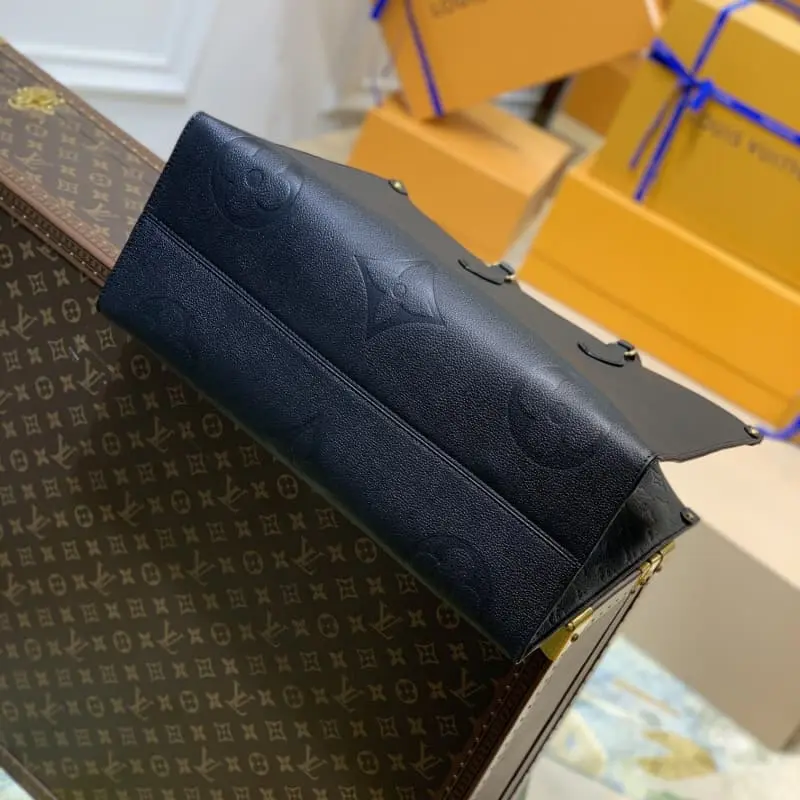 ONTHEGO handbag M44925 black embossed size: 41.0 x 34.0 x 19.0 cm (length x height x width) Pick up the Onthego handbag and set off immediately for work, shopping or weekend trips. The oversized Monogram print contrasts with the mini Monogram trim and is paired with ample lining, which is avant-garde and modern.