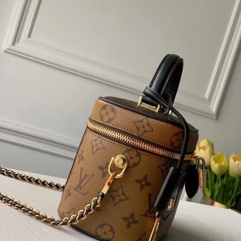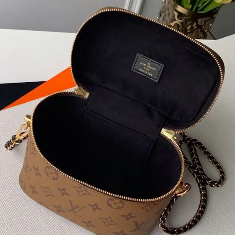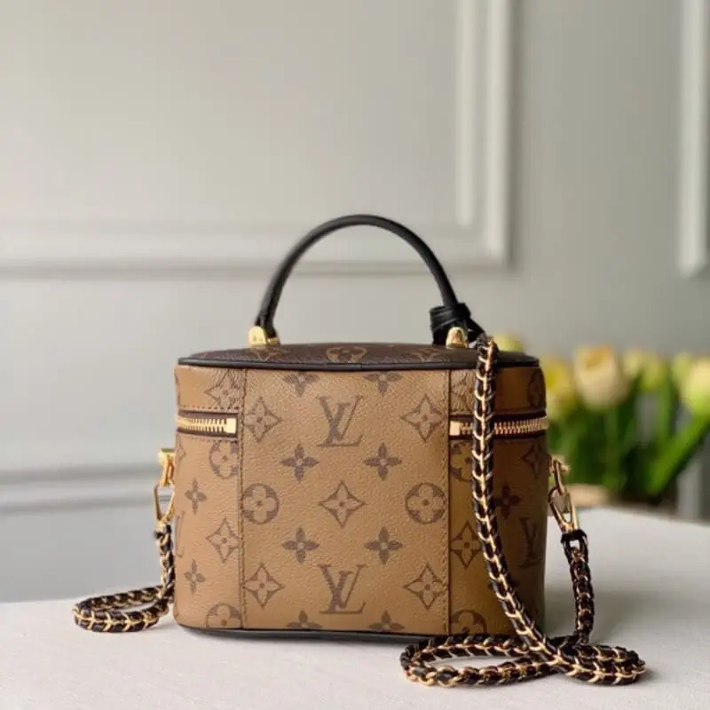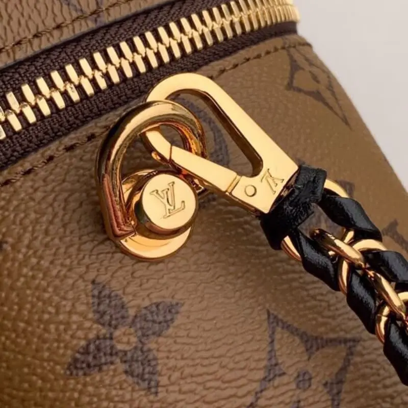 M45165 A cosmetic case chain bag with a strong sense of design. The iconic L bag element is used to show a strong retro tone. The flexible use of the color matching style and the combination of metal and leather woven shoulder strap design just bring out the fashionable charm. Whether it is hand-carried, shoulder-carried or cross-body, it is great. It is a sophisticated and fashionable all-match style. It looks good in a simple and rough introduction.