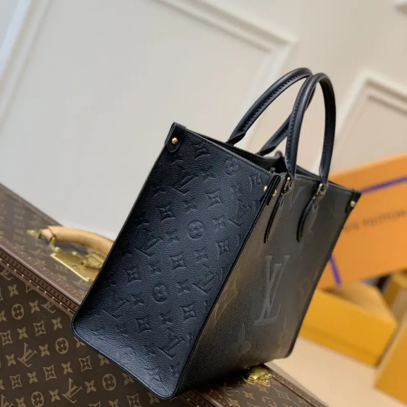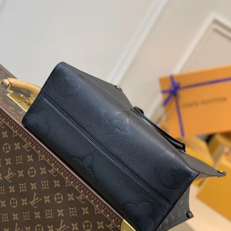 ONTHEGO handbag M45595 Size: 35-28-15cm (length x height x width) Pick up the Onthego handbag and set off immediately for work, shopping or weekend trips. The oversized Monogram print contrasts with the mini Monogram trim and is paired with ample lining, which is avant-garde and modern.