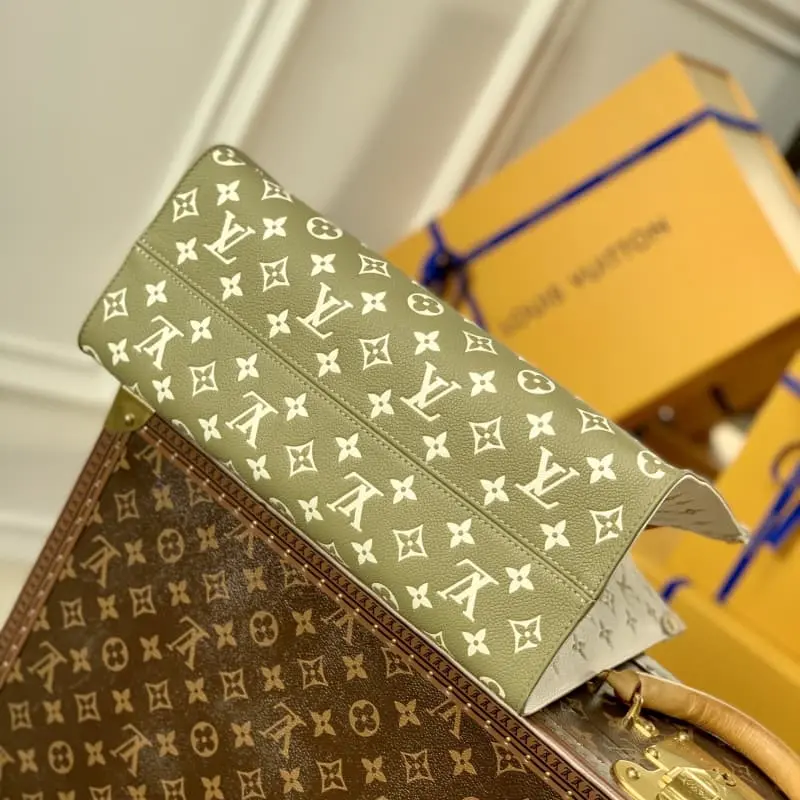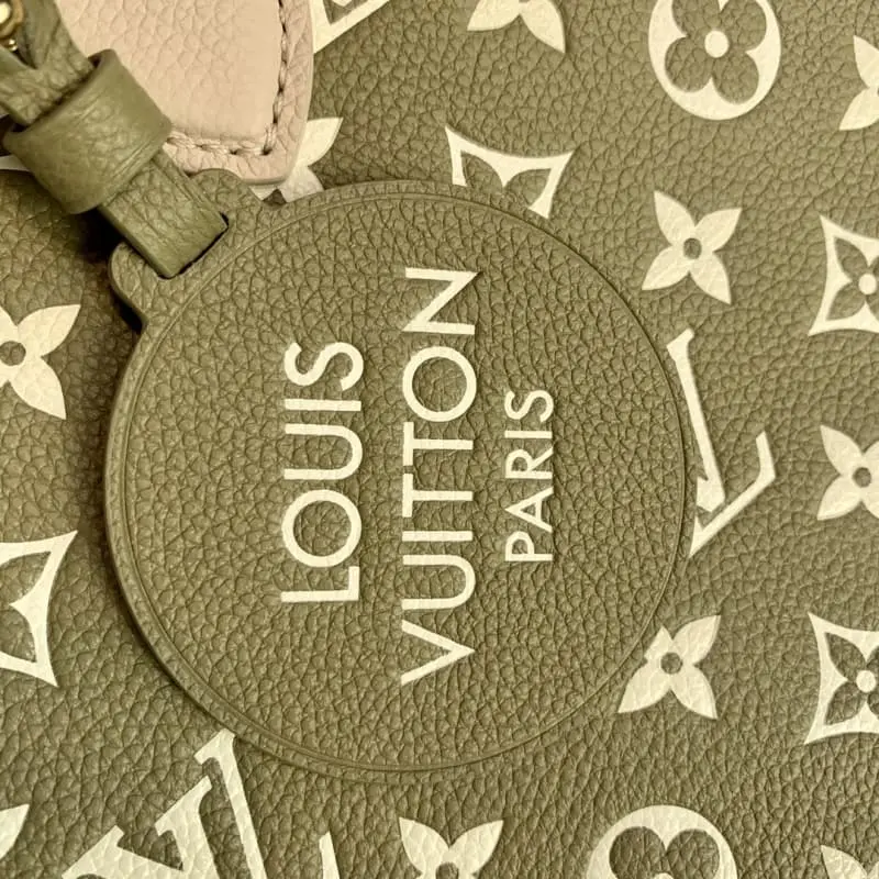 Original M46060 Green with Gray This OnTheGo handbag is made of Monogram Empreinte cowhide leather. The classic Monogram pattern is embossed and printed on the dazzling leather body. There is plenty of space to accommodate a laptop. The long and short handles provide a variety of carrying methods. Dimensions: 35.0 x 27.0 x 14.0 cm (length x height x width)