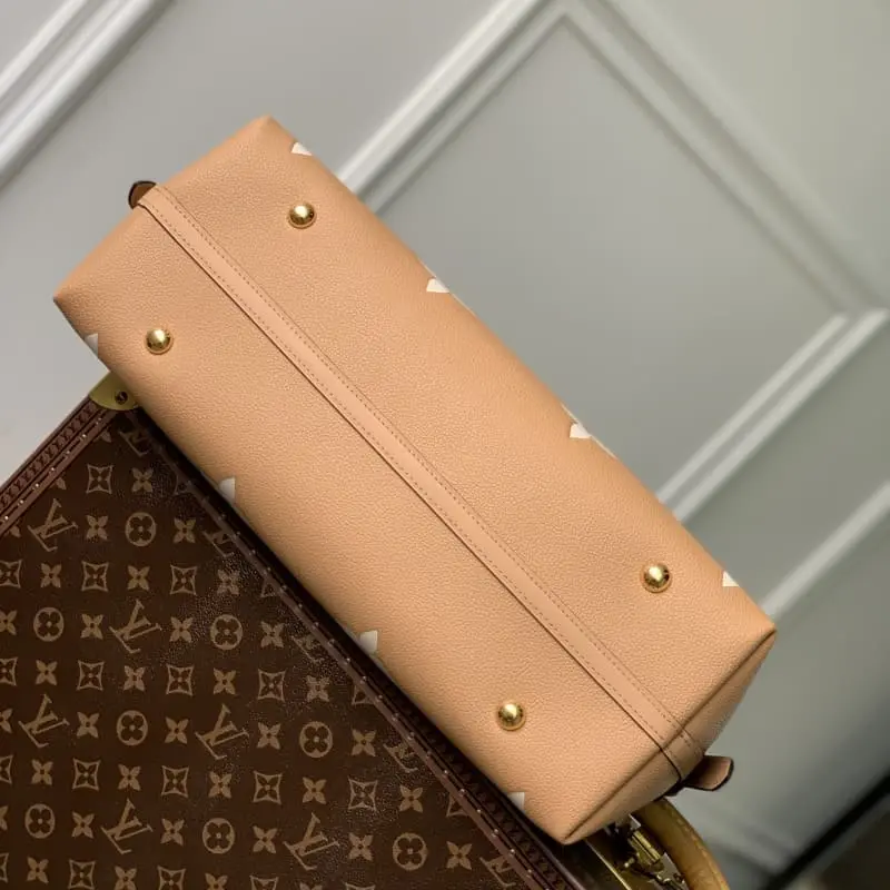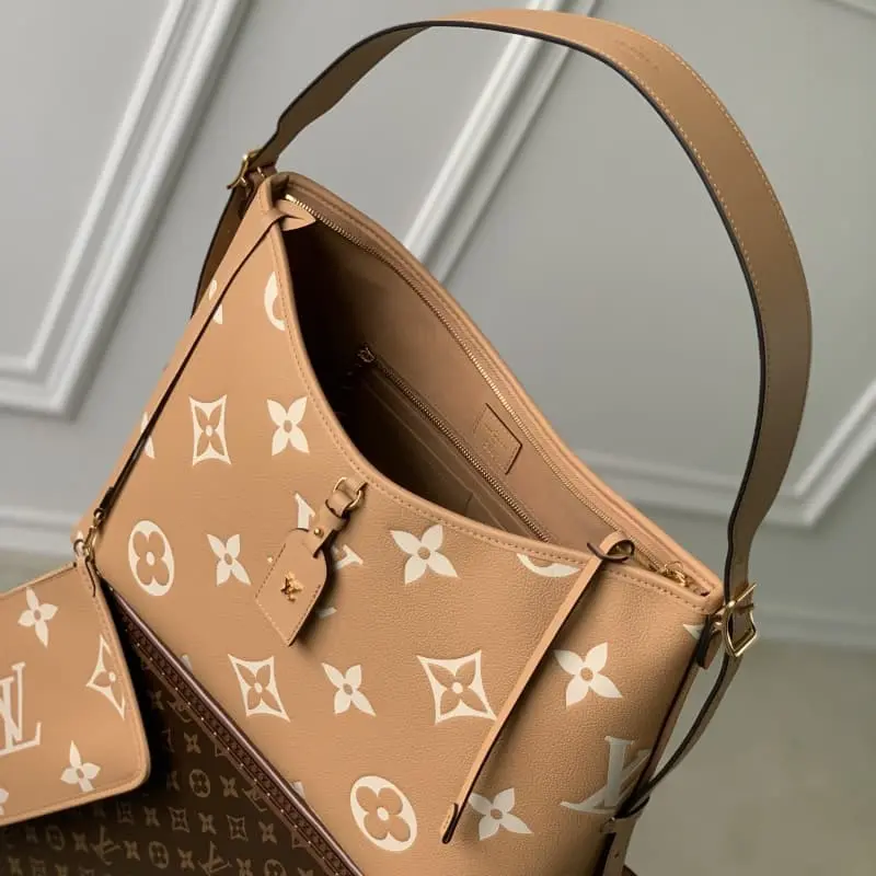 M46289 Brown CarryAll Medium Handbag Made of Monogram Empreinte embossed leather. The ample structure has a neat inner large pocket to add functional elements. Paired with Monogram embossed zipper clutch, it is fixed with a leather strap. A close companion for urban life. 39 x 30 x 15 cm