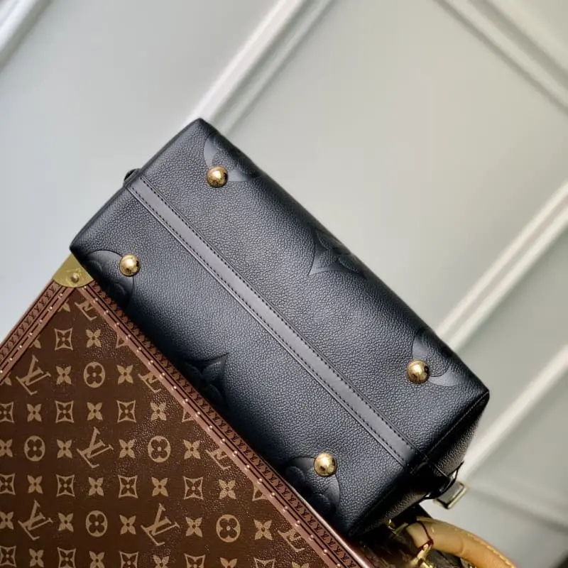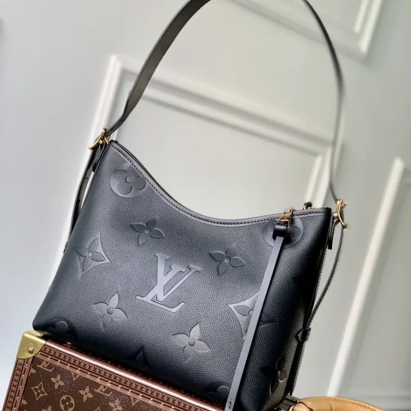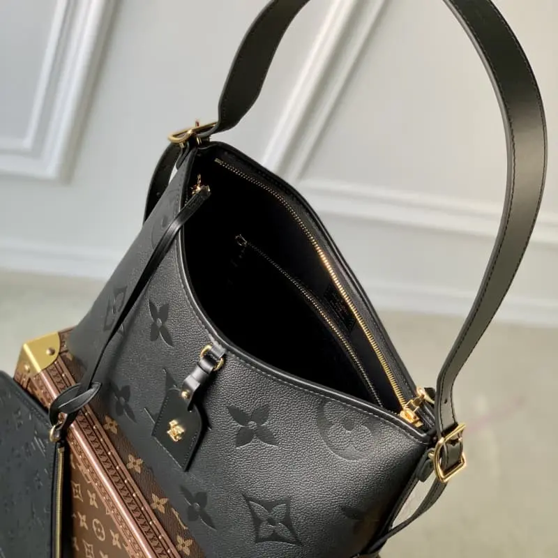 M46293g CarryAll small handbag made of Monogram Empreinte embossed leather. The ample structure has a neat inner layer and a large inner pocket to add functional elements. It is matched with a Monogram embossed zipper clutch and fixed with a leather strap. It is a close companion for urban life. 29 x 24 x 12 cm (length x height x width)