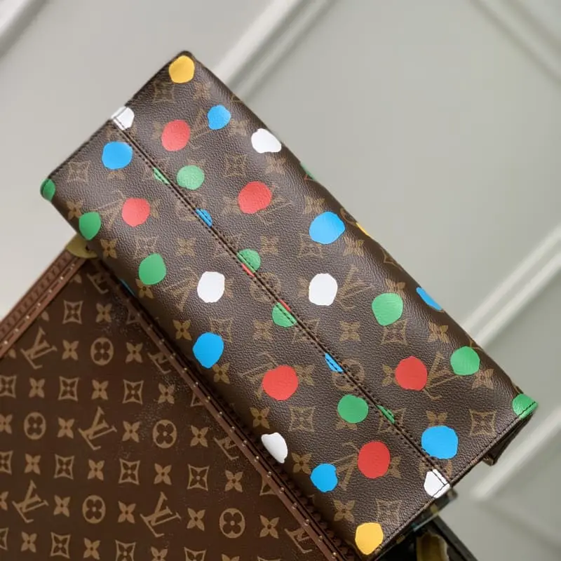 M46379 After the first collaboration between the famous Japanese artist Yayoi Kusama and Lbag, she painted a colorful polka dot on a hard case. Ten years later, this pattern reappeared in the second collaboration series between the two parties. The Monogram canvas of this LV x YK OnTheGo medium handbag makes the artistic atmosphere accompany the steps of life. Detailed features: 35 x 27 x 14 cm (length x height x width)