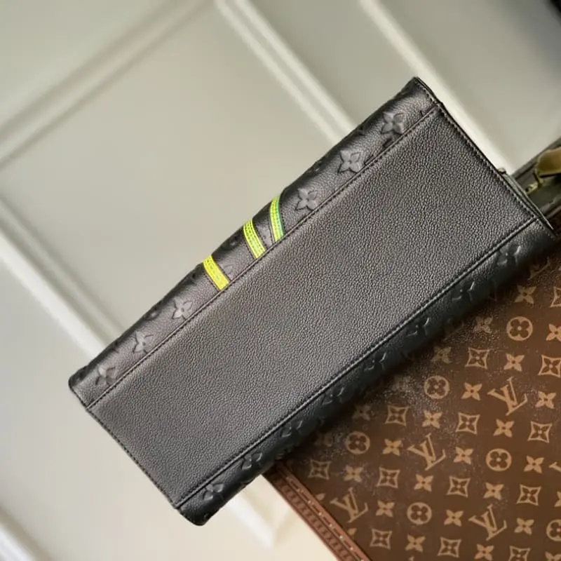 M46416 Black floral full leather square bag Mommy bag series On the go MM handbag The LV x YK Onthego MM in the Lbag x Yayoi Kusama series attracts attention with its delicate floral pattern. Luxurious black solid color Amprente Cohesion material. The famous artist Yayoi Kusama, who grew up in a rural area of Japan where her parents run a plant seedling farm, has used floral patterns as an important theme in her works during her career as an artist. An item that is like a work of art, born from the combination of abundant practical artistry and craftsmanship. Product details 35 x 27 x 14 cm