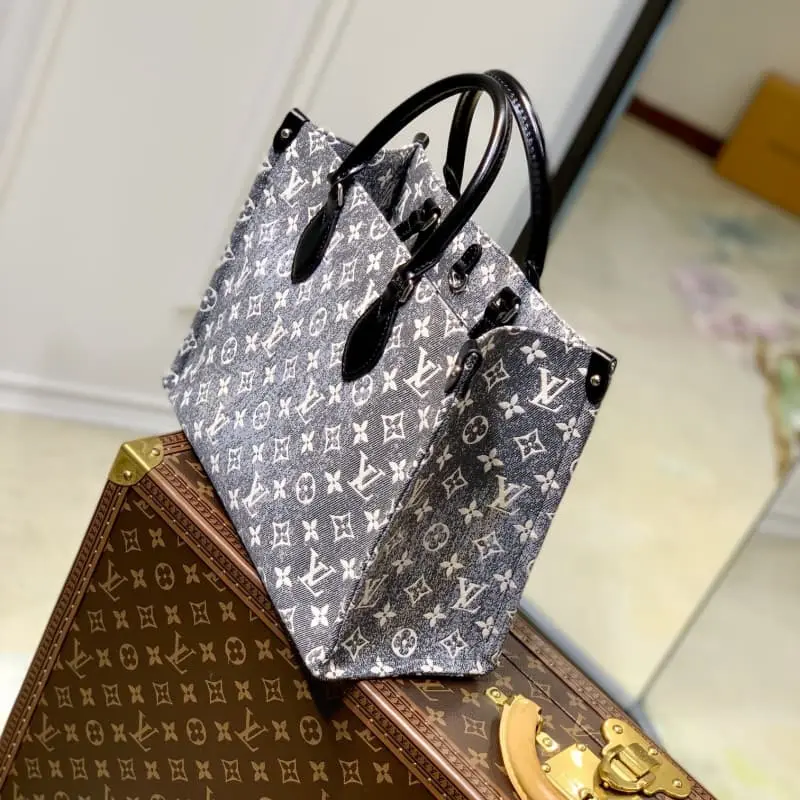 M46448-Medium handbag uses the 2023 Cruise early spring new model show debut Monogram jacquard denim with professional craftsmanship to present a rough sand-washed texture. The lining depicts a flip effect pattern leather trim and metal perfect details! Size: 35-27-14cm