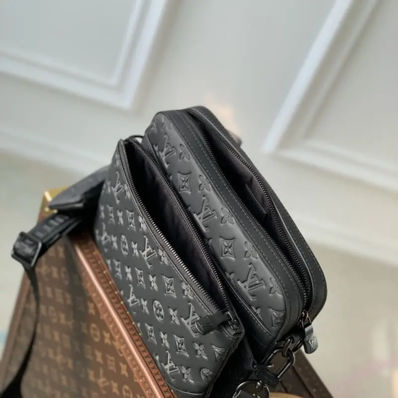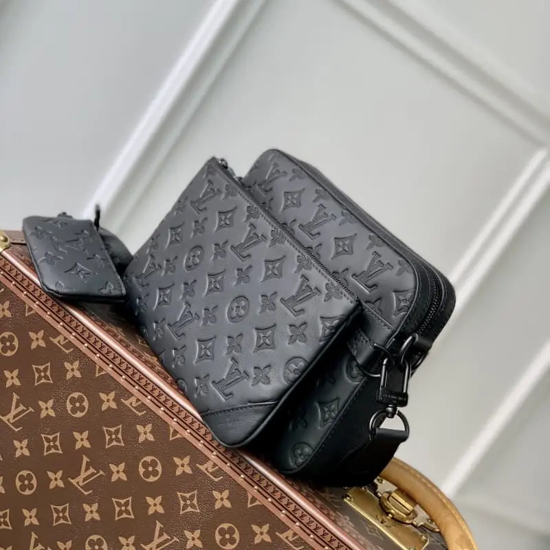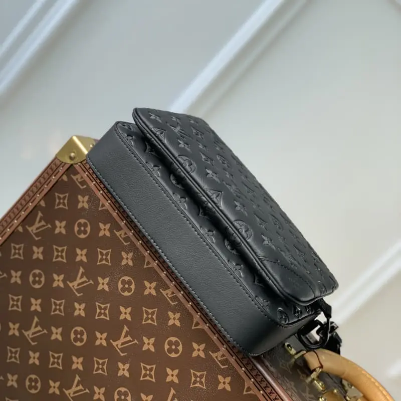 This Trio messenger bag is made of Monogram embossed cowhide leather. The zippered front pocket and the small coin purse on the shoulder strap are both detachable and enrich the functional design with the main compartment. The detachable and adjustable jacquard fabric shoulder strap is marked with the brand logo to achieve a comfortable shoulder and crossbody experience. 25.0 x 18.5 x 7.0 cm (length x height x width)