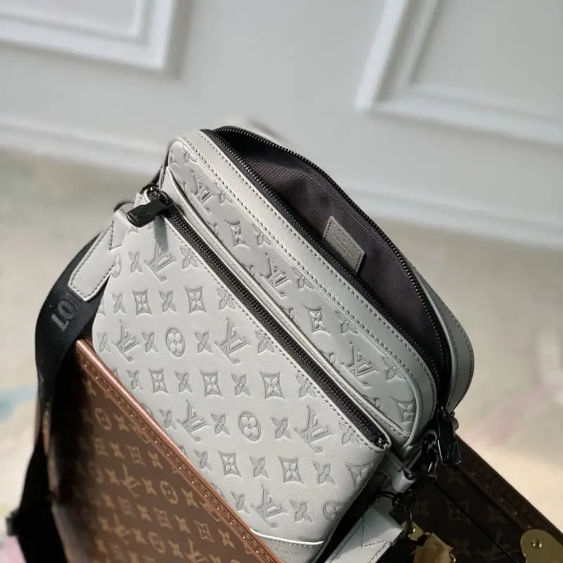 M46603 Grey full leather men’s bag three-piece series This Trio messenger bag is made of Monogram embossed cow leather. The zipper front pocket and the small coin purse on the shoulder strap are detachable and enrich the functional design with the main compartment. The detachable and adjustable jacquard fabric shoulder strap is marked with the brand logo to achieve a comfortable shoulder and crossbody experience. Size: 25×18.5x7cm (length x height x width).