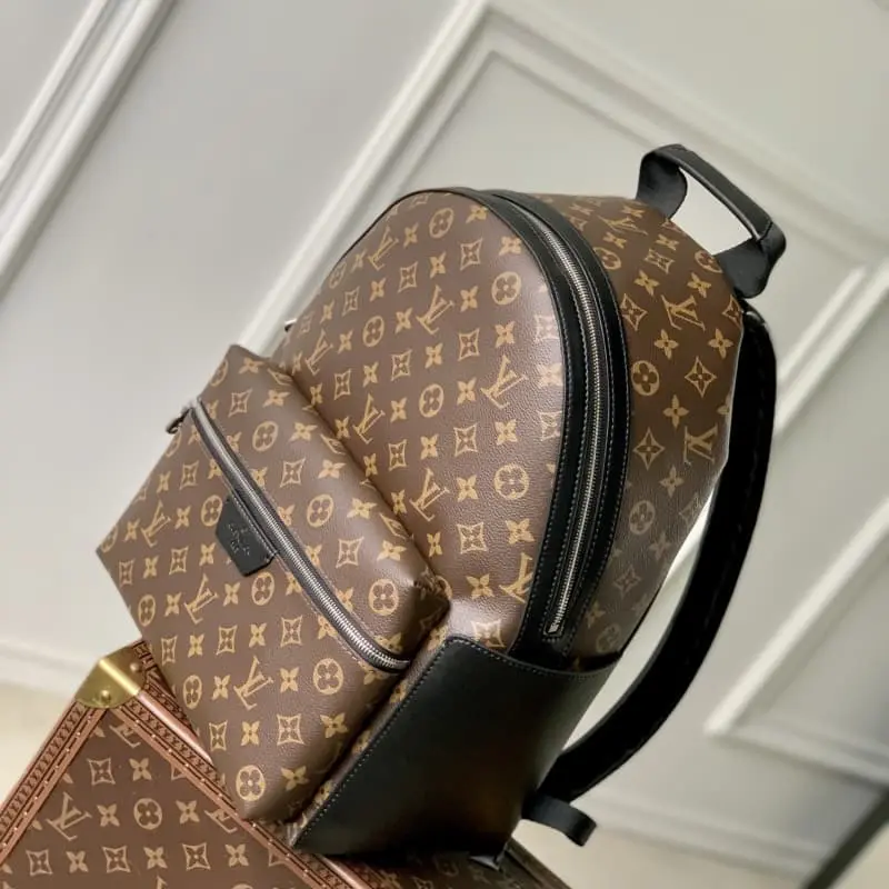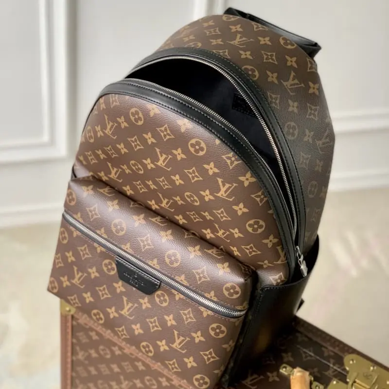 M46684 This Discovery backpack is made of Monogram Macassar canvas with black cowhide trim and palladium hardware, adding classic elegance to the modern silhouette. The backpack features a spacious external pocket for easy access to essentials and three internal pockets, one of which is designed to accommodate a tablet. It also comes with an adjustable shoulder strap and top handle for different carrying methods. 29 x 38 x 20 cm (length x height x width)