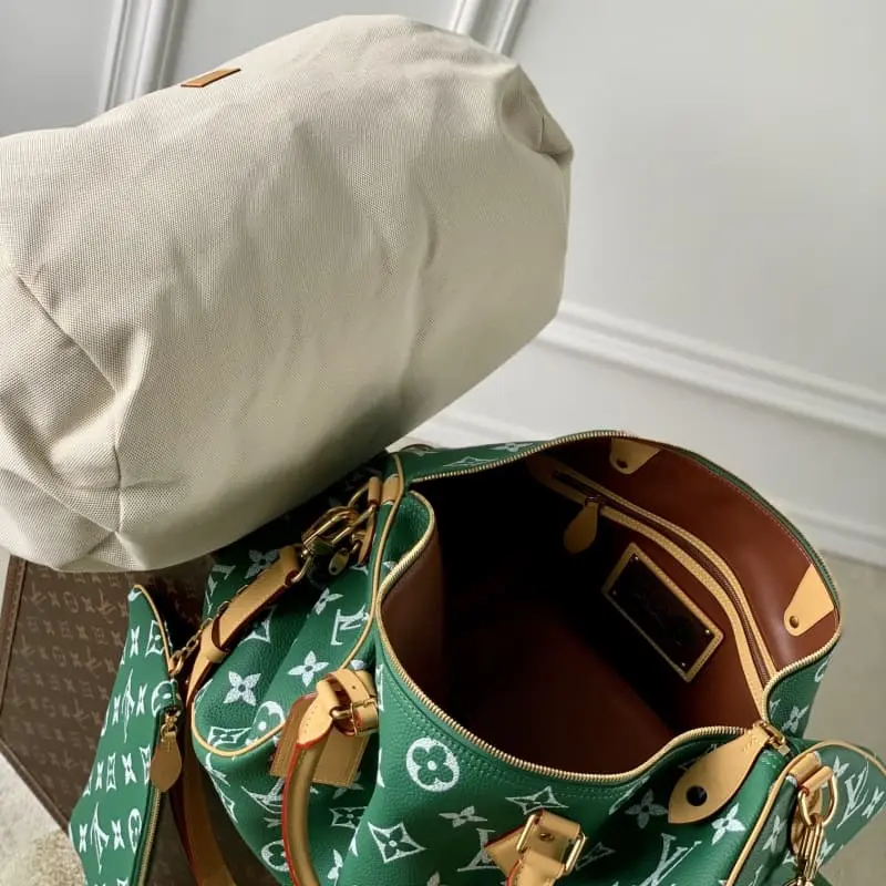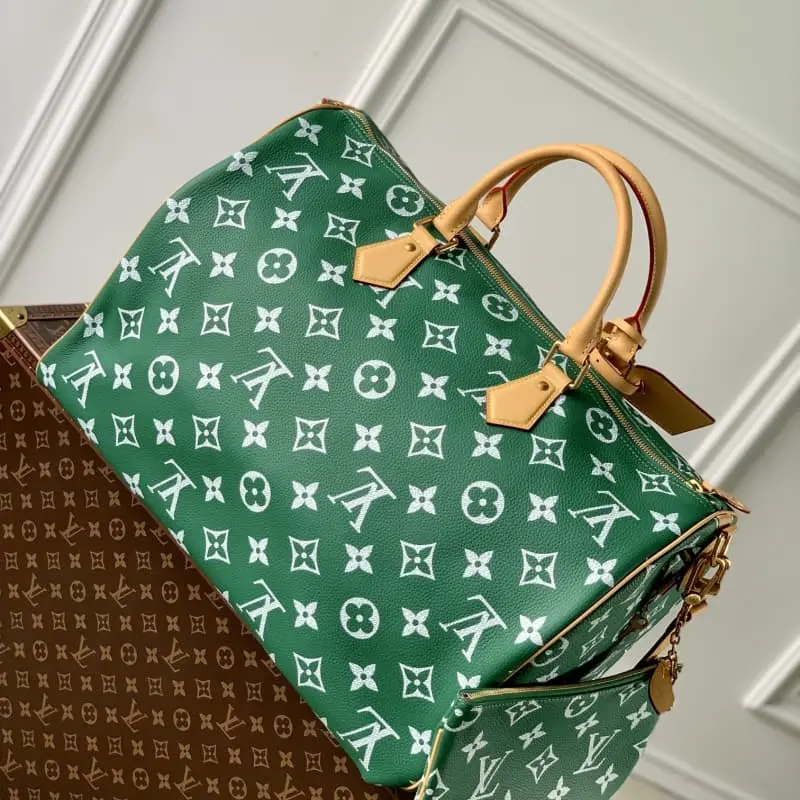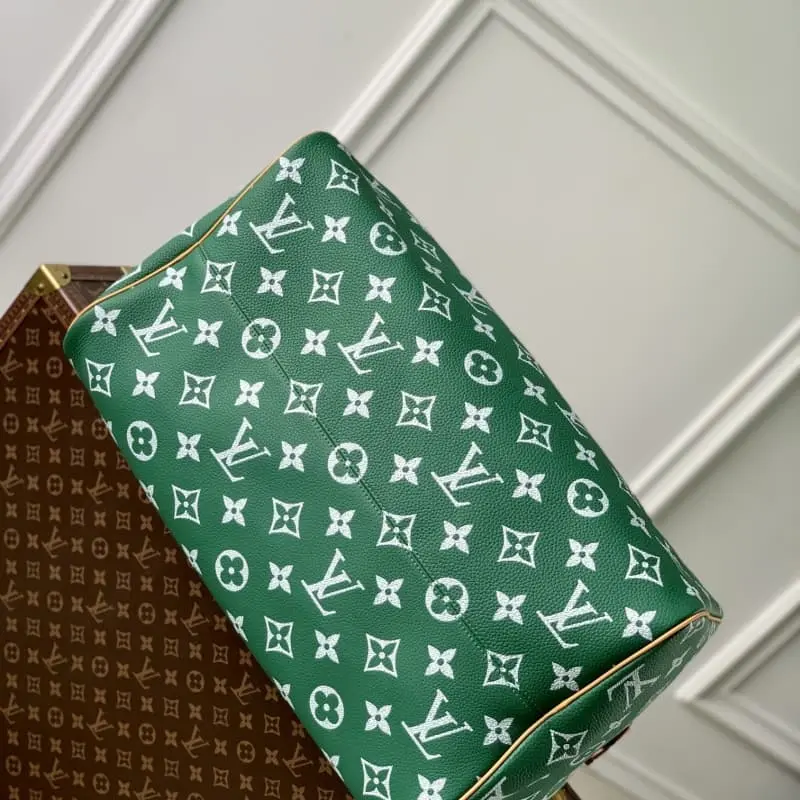 M46691 Green Speedy P9 Bandouli??re 50 handbag is made of soft cowhide with cowhide trim and sheepskin lining, and bright colors brighten the elegant configuration. The rolled leather handle combined with the detachable and adjustable shoulder strap provides a comfortable shoulder experience. Size: 50x32x29 cm (length x height x width)