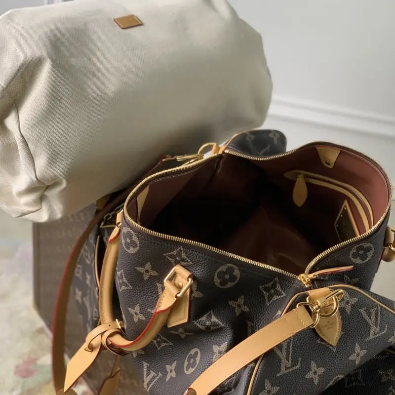 M46691 Speedy P9 Bandouli??re 50 handbag with old flower This model is made of soft cowhide with cowhide trim and sheepskin lining, and the elegant configuration is brightened with bright colors. The rolled leather handle is combined with a detachable and adjustable shoulder strap for a comfortable shoulder experience. Size: 50x32x29 cm (length x height x width)