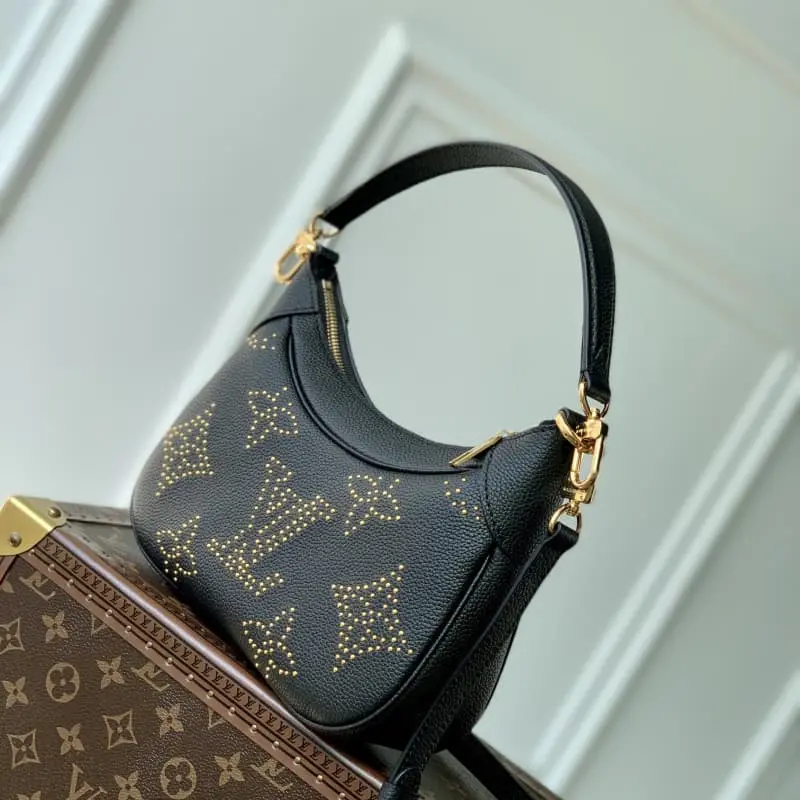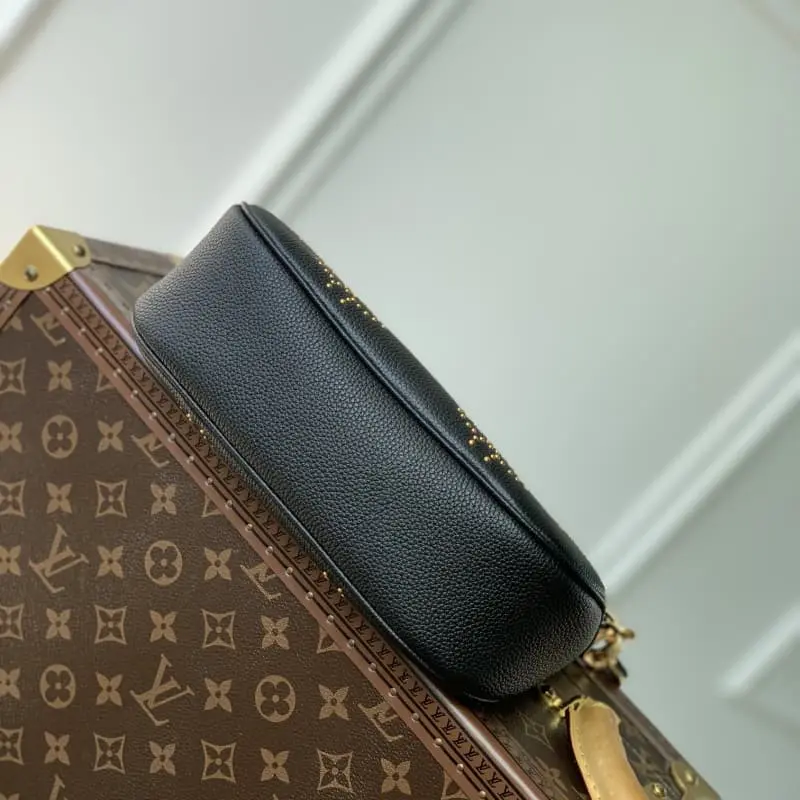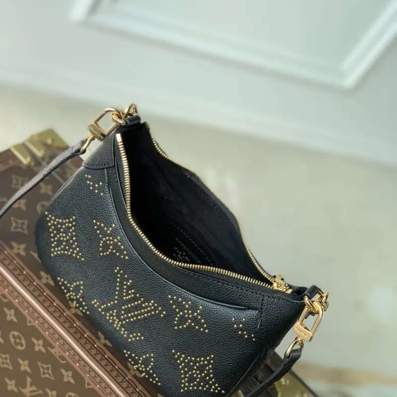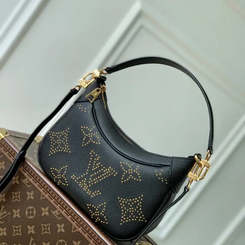 M46735 Black full leather rivet croissant series This Bagatelle handbag exudes rock style with Monogram Empreinte leather. m46091 Full leather rivet with nails studded crescent bag pea bag croissant bag The black dazzling studs are exquisitely constructed with classic Monogram patterns to highlight the brand’s craftsmanship. The handle and adjustable shoulder strap are both removable. 24 x 18 x 7 cm.