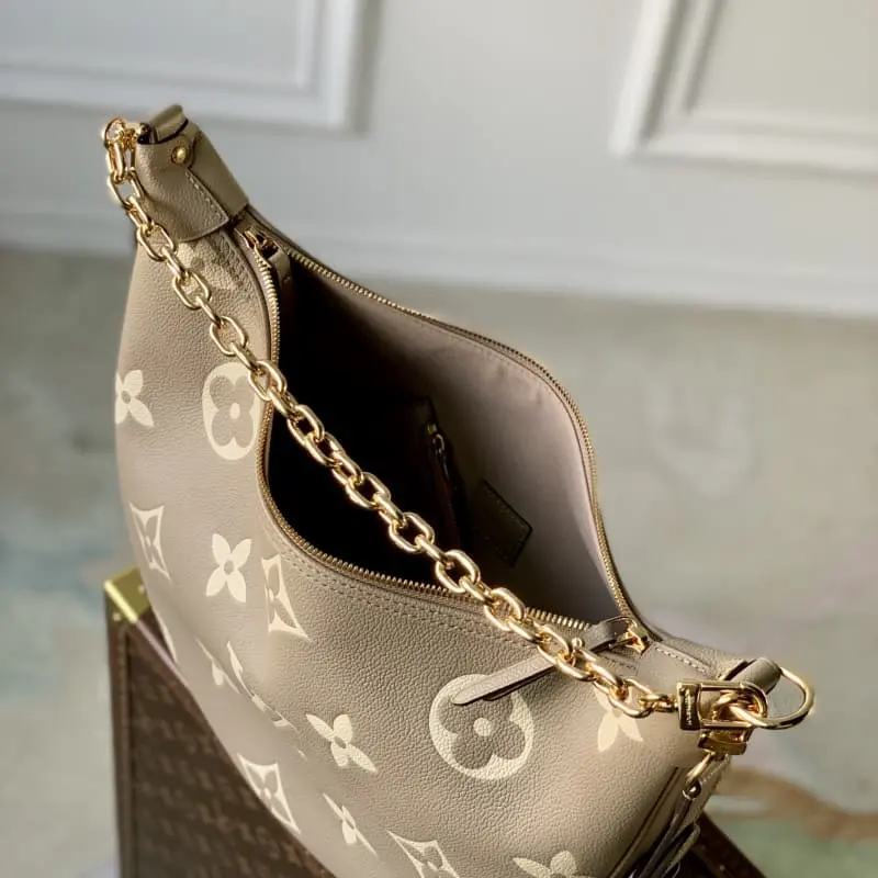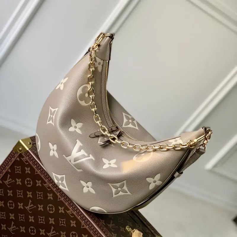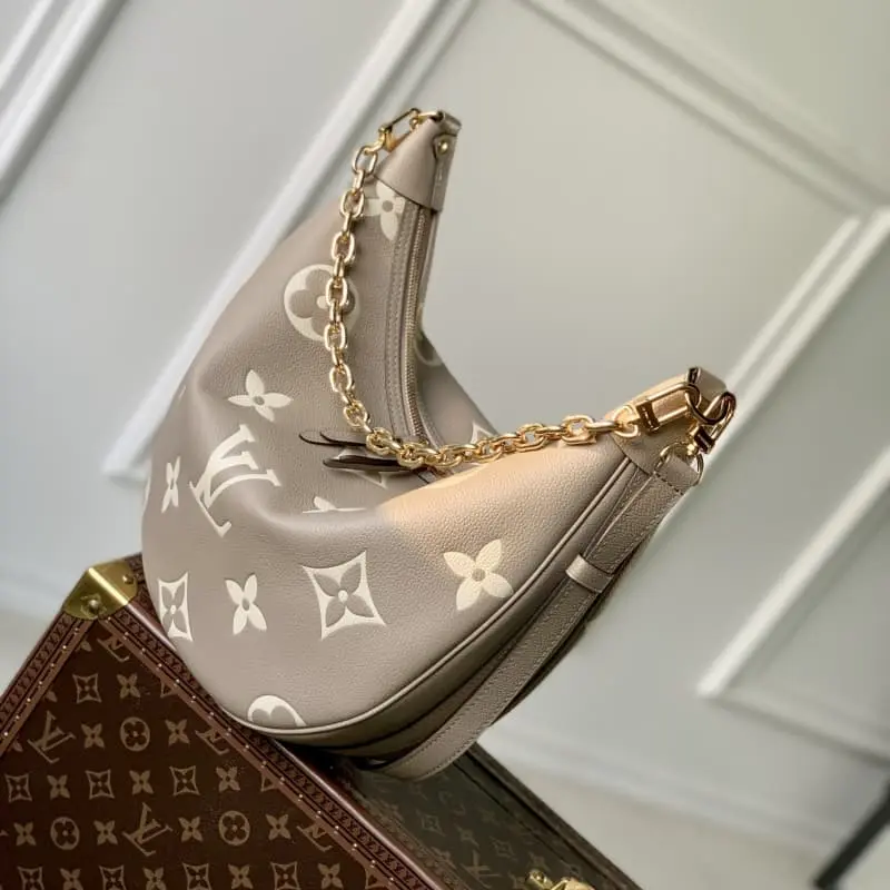 M46738 This Loop Hobo handbag is made of soft Monogram Empreinte cowhide leather and has a trendy half-moon shape that fits the body shape with ample space, making it a great choice for urban travel. The detachable zipper pocket can also be used alone to tie a chain or adjustable shoulder strap to explore more carrying methods. 38.0 x 26.0 x 10.0 cm (length x height x width)