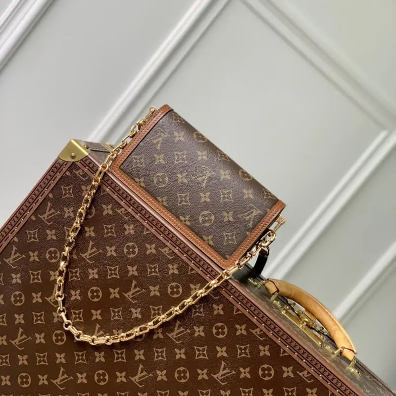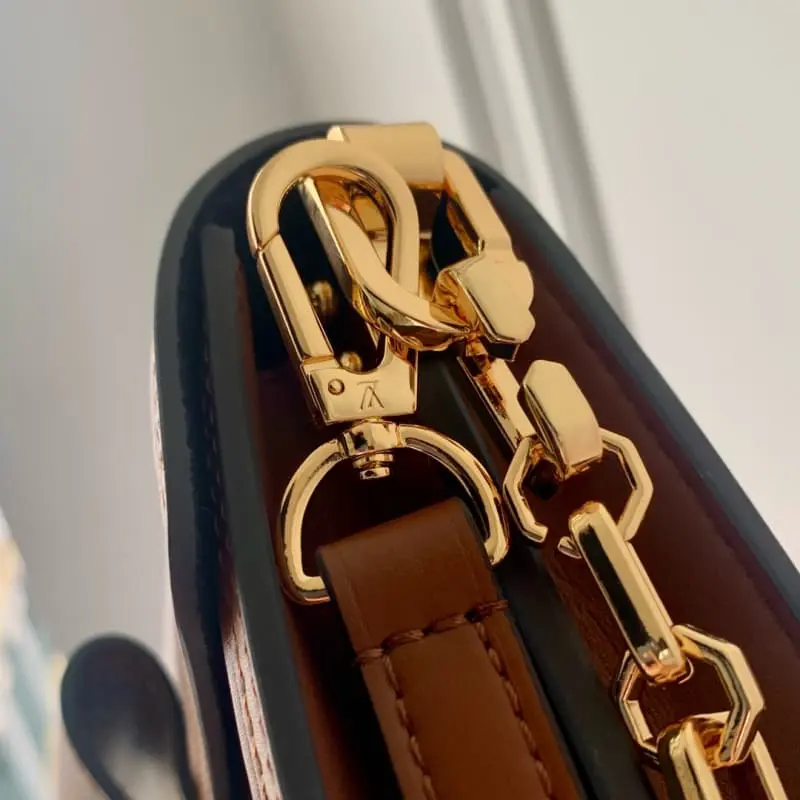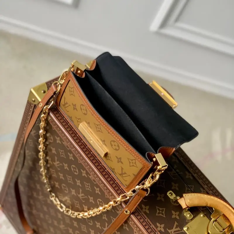 This Dauphine East West handbag combines classic Monogram and Monogram Reverse canvases in the brand’s iconic style to create a slender shape that cleverly echoes the rectangular outline of the Dauphine LV lock. Cleverly use the detachable leather shoulder strap and chain to switch between multiple carrying methods. Dimensions: 21 x 12 x 5 cm (length x height x width)