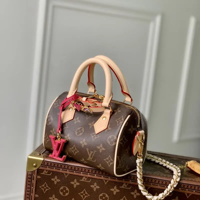 M469702024 China Qixi Limited Speedy18 meets daily needs with exquisite and compact accessories that can be worn in a variety of ways, plus a detachable leather shoulder strap for a comfortable shoulder and crossbody experience. 18.0×12.5×11.0 (length x height x width)