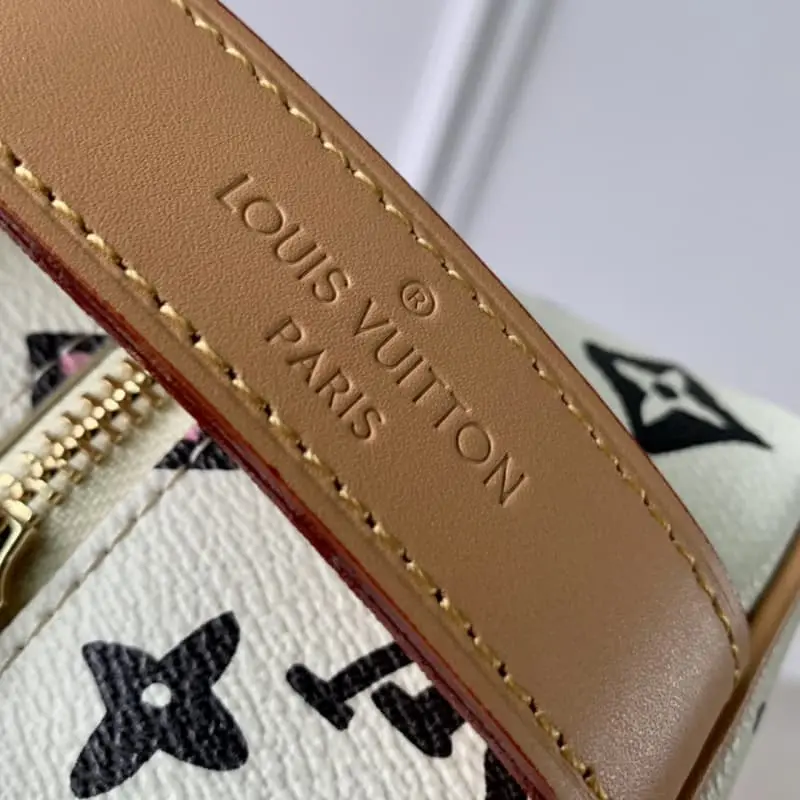 M47069 Monogram Craggy canvas with white flowers The colorful Monogram pattern is hand-painted by designer Tyler, the Creator. The exquisite structure contains ample space to hold a variety of daily necessities and makes it a powerful travel companion. The washable lining and adjustable side handles add functional details. Dimensions: 23.0 x 13.0 x 12.0 cm