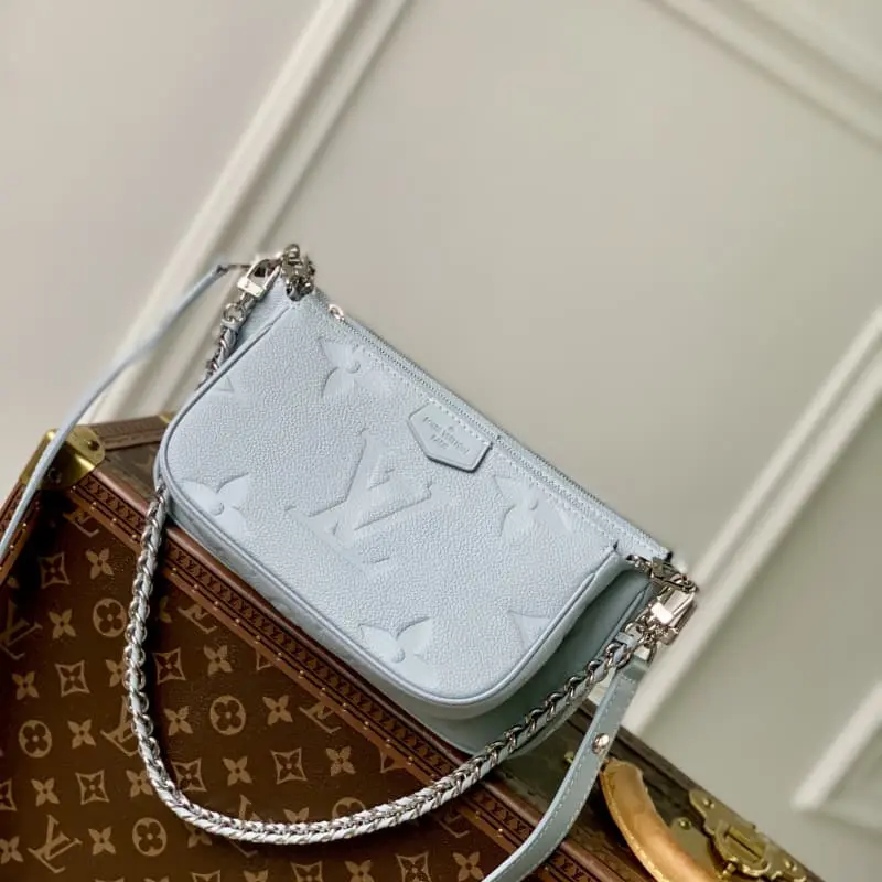 M47173 Blue M80399 This Multi Pochette Accessoires handbag is made of Monogram Empreinte leather and is a lightweight structure that cleverly combines independent large and small clutches. The former has an inner patch pocket that can easily accommodate daily needs. The chain and adjustable shoulder strap are both detachable and provide a variety of carrying options. 25 x 14.5 x 4.5 cm (length x height x width)