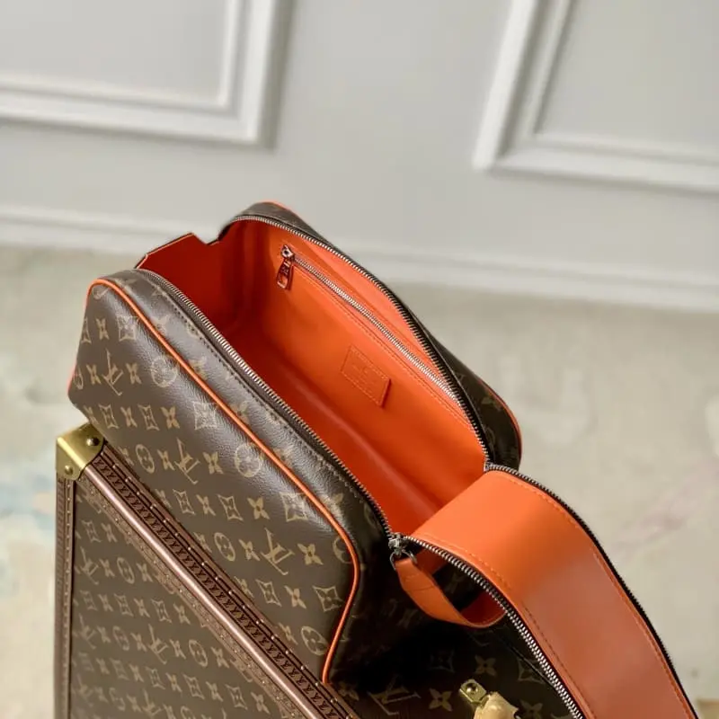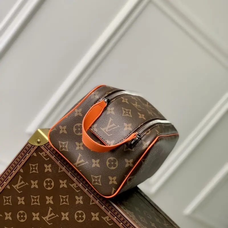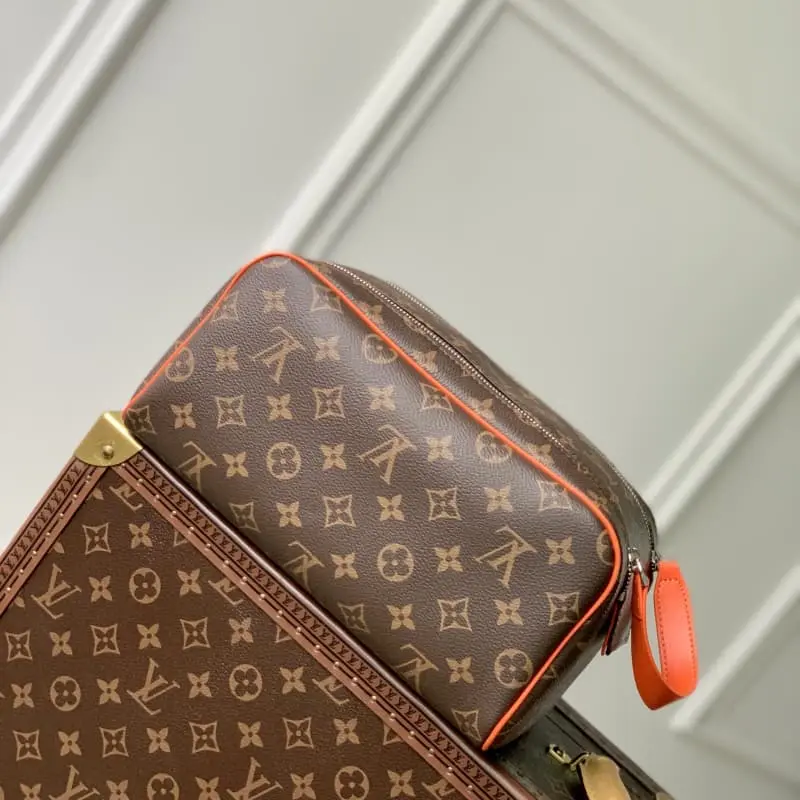 M47528 Orange (cosmetic bag) The large toiletry bag has a generous appearance and is made of soft canvas with a large double zipper opening for easy access. It can hold all your toiletry necessities. -Damier canvas texture leather lining -Silver silver accessories -Double zipper closure with leather strap -Built-in zipper patch pocket -size28x16x13cm.
