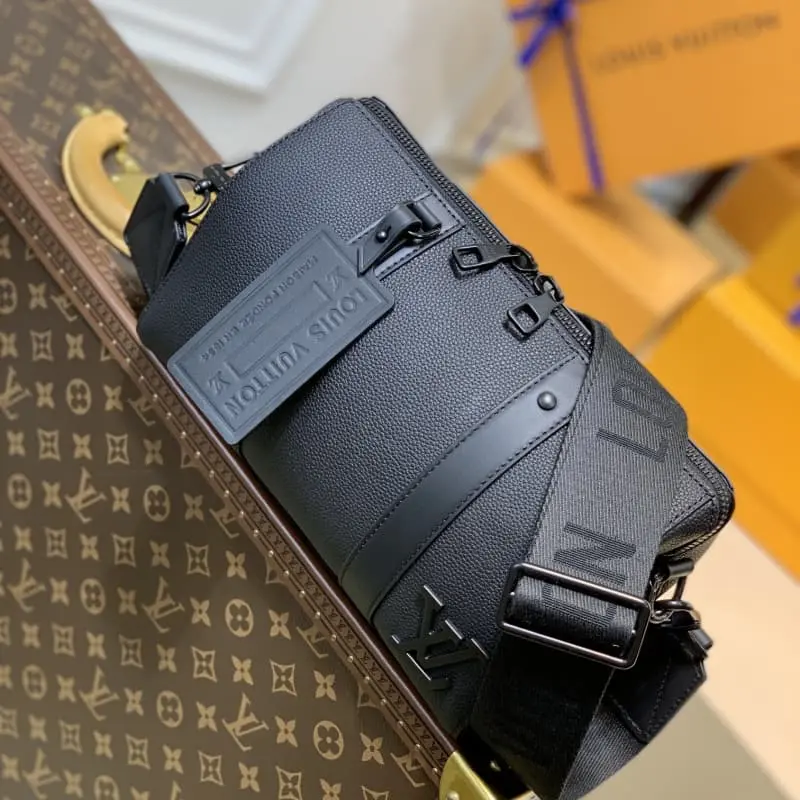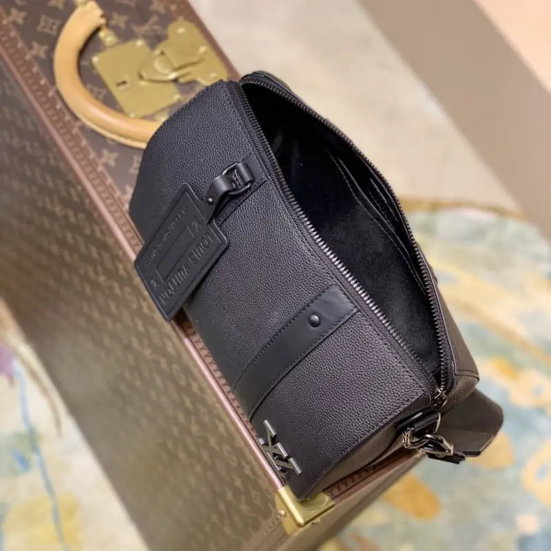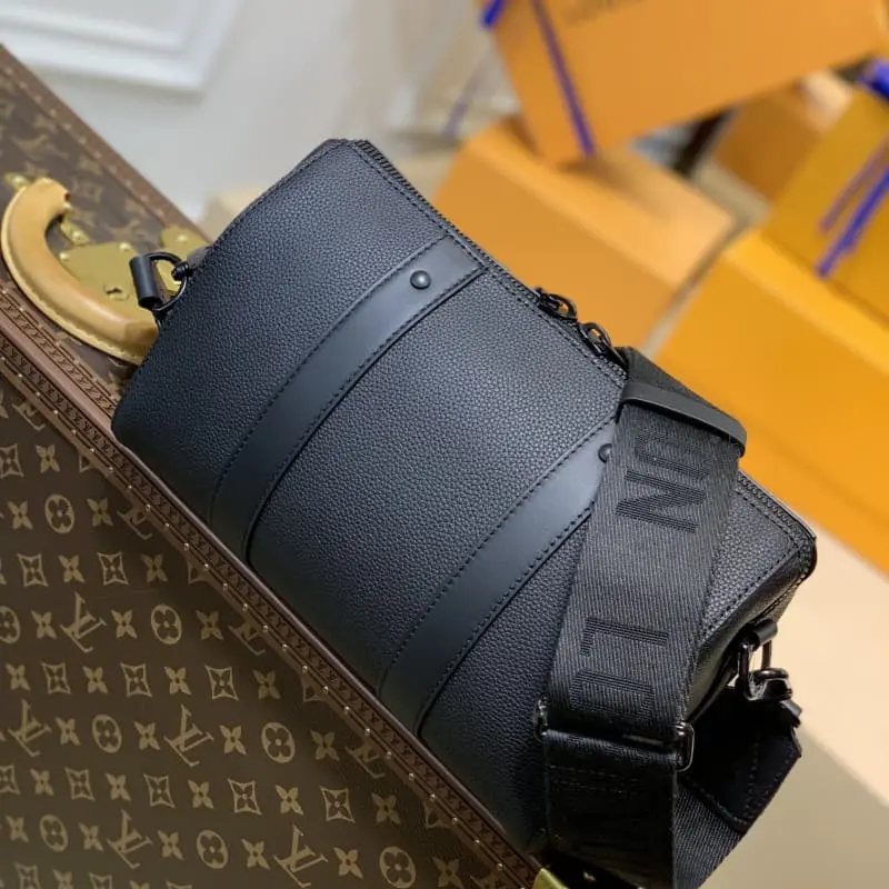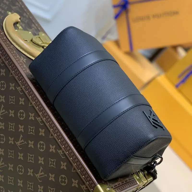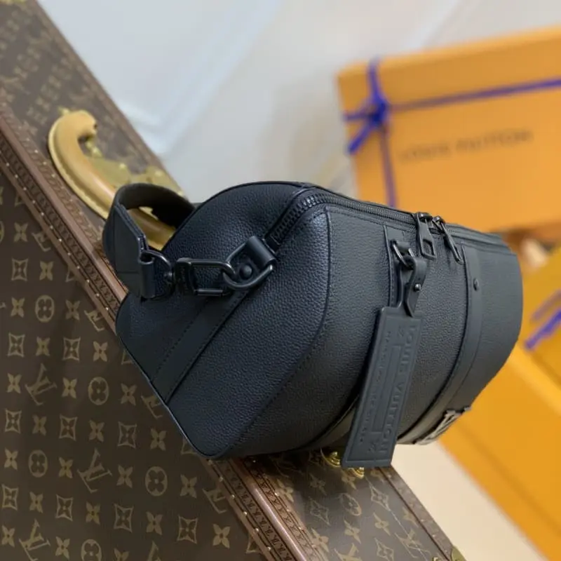 City Keepall Bag M57082 Black Menswear Artistic Director Virgil Abloh redesigned the classic bag to create this men’s City Keepall bag made of black grained leather Details in black and white Damier Distorted canvas with orange L* initials. Dimensions: 27 ?? 17 ?? 13 cm.