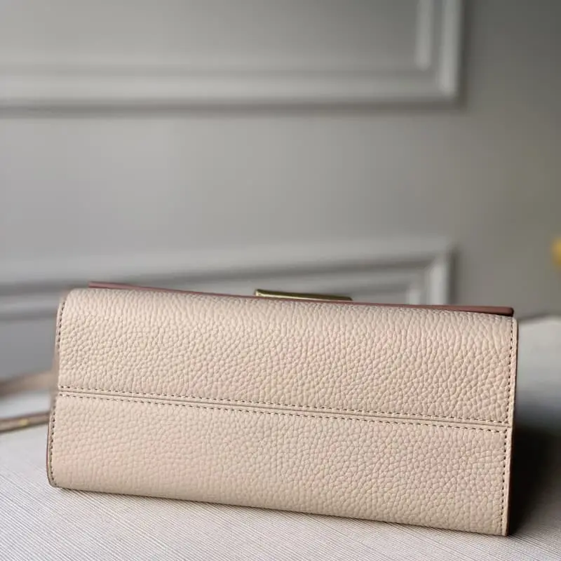 The new model M57214 Lbag launches the Twist One Handle small handbag with Taurillon leather and colorful leather lining, incorporating the iconic LV Twist lock. The top handle and detachable shoulder strap allow you to carry it by hand, on the shoulder or across the body. Detailed features 17.0 x 25.0 x 11.0 cm (length x height x width) Taurillon cowhide Taurillon cowhide trim Cowhide lining Metal parts Deformed version of the LV Twist twist lock patch pocket Zipper pocket Patch pocket with detachable mirror Shoulder strap: detachable Adjustable strap half length: 34.5 cm Strap half length can be adjusted to: 56.5 cm Handle: Single handle