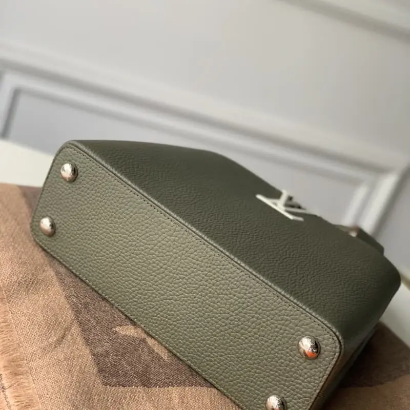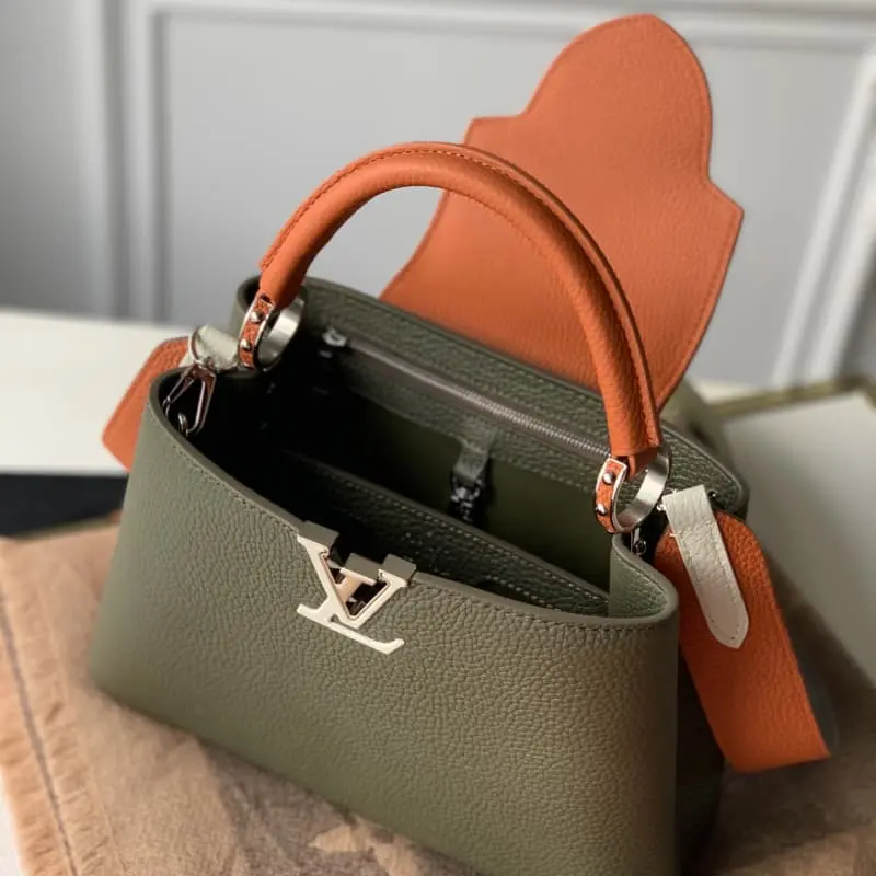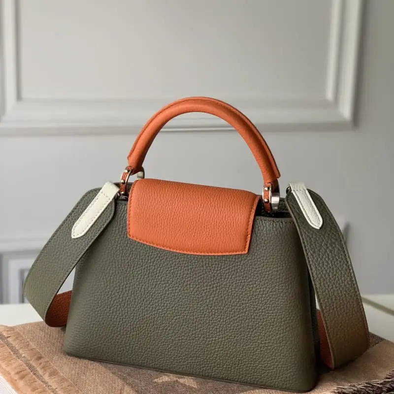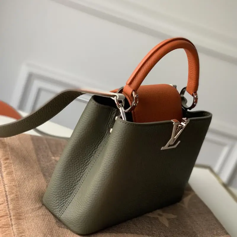 M57522 CAPUCINES Small Handbag tells a new Capucines story this season. The exquisite metallic Monogram floral ribbon makes this classic handbag exude a more feminine temperament. Na Ying full leather black blue and white color matching full leather Na Ying oo [handshake] [handshake] Small size The exquisite black body with golden crown decoration is elegant and practical. Size: 27x19x9cm