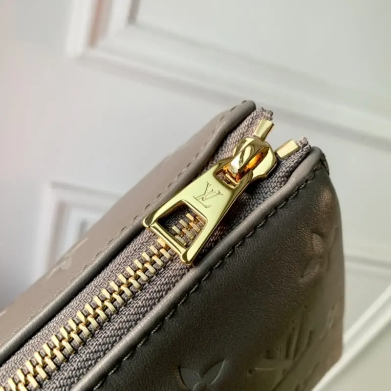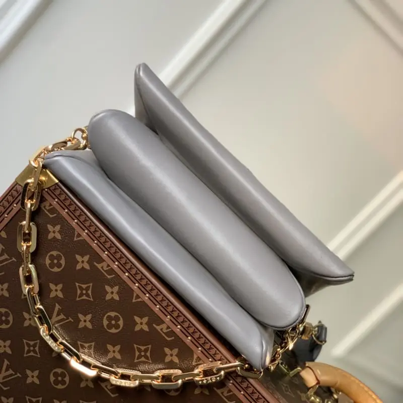 Coussin small handbag M57791 is made of Monogram embossed fluffy sheepskin with metal parts. Soft and pillow-like configuration with internal compartments. Removable wide shoulder strap for shoulder or crossbody. You can also use the chain to carry it on the shoulder. Size: 26 x 20 x 12cm