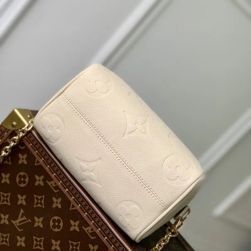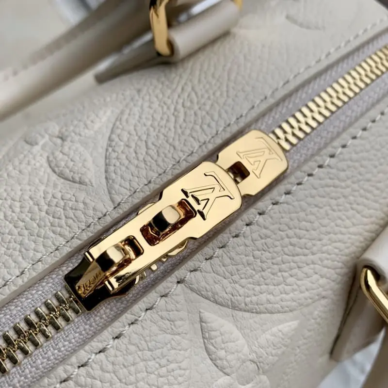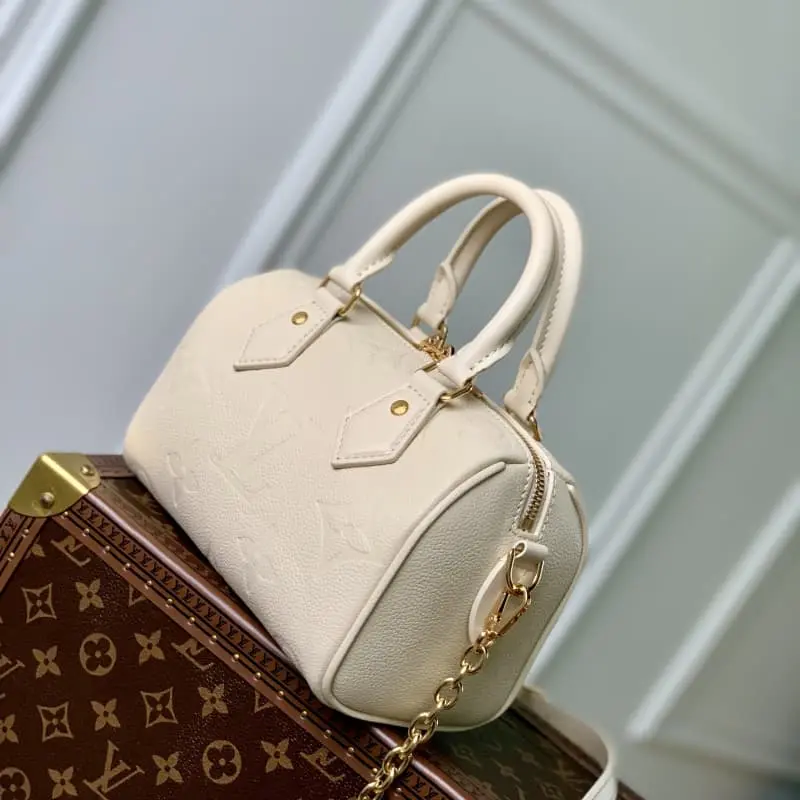 M58953 This Speedy Bandouli??re 20 bag is a compact and stylish bag that can carry your daily necessities. Made of smooth Monogram Empreinte grained leather, it is decorated with a large Monogram embossed with a padlock, hardware, a removable and adjustable chain shoulder strap and Toron handles. 20.5 x 13.5 x 12.0 cm (L x H x W)