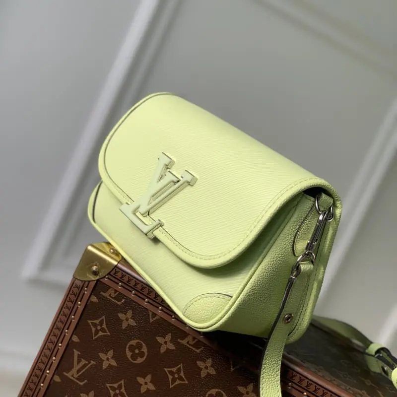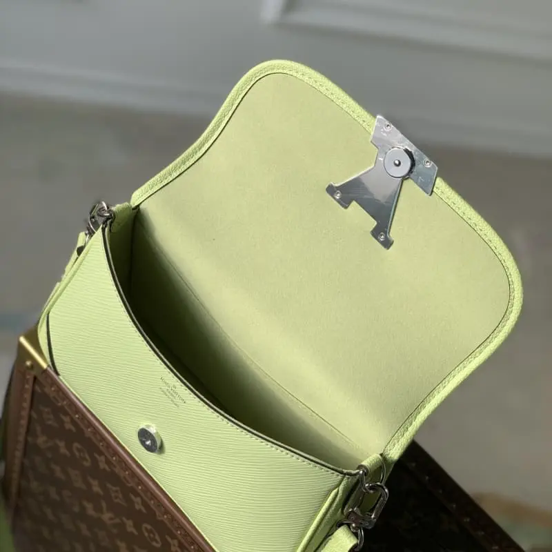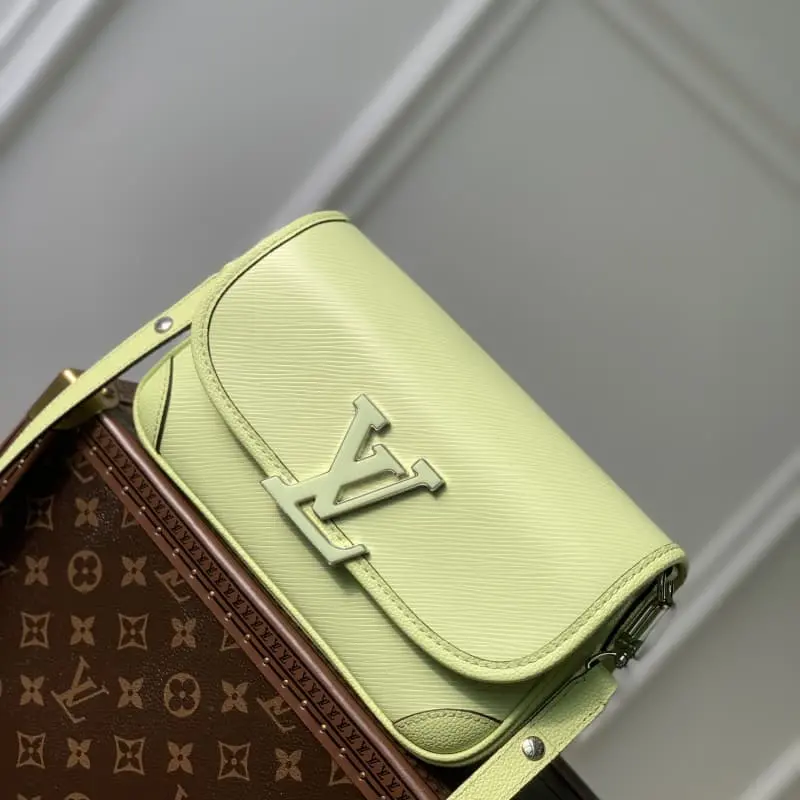 M59386Apple GreenM22960Pastel Epi leather brings summer vibes to this Buci bag with its chic embossing. Rounded corners, smooth leather trims and accordion-style sides create a soft silhouette. Large resin LV letters adorn the front flap for a classic feel. Removable and adjustable shoulder strap for comfortable shoulder carry. Detailed Features 24.5 x 15.5 x 9 cm (length x height x width)