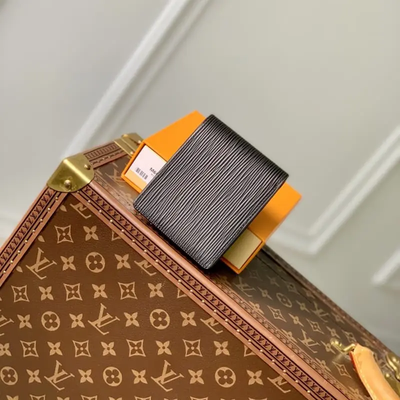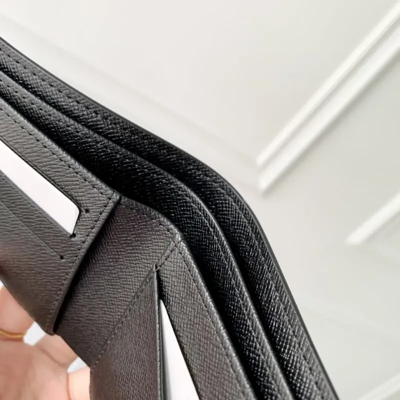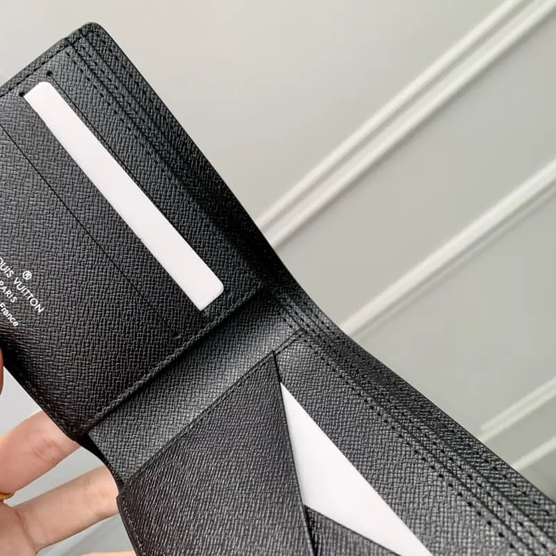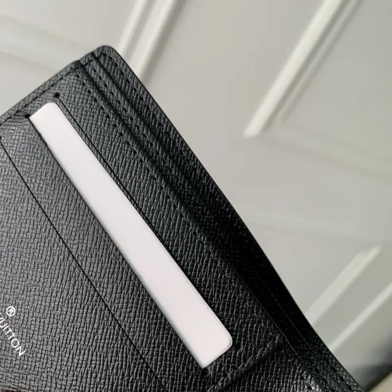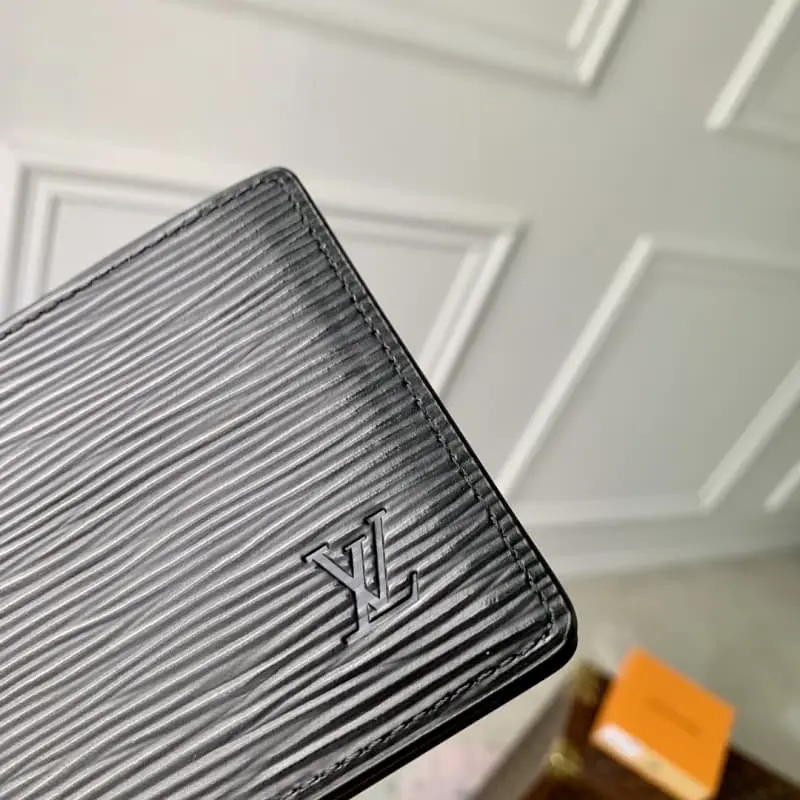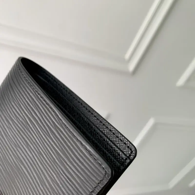 M60332 Black Water Ripple Short Wallet This fine and soft leather is the ideal material for a wallet. This compact yet practical wallet has multiple pockets and card slots and fits easily into any pocket. Size: 11.5X9cm.