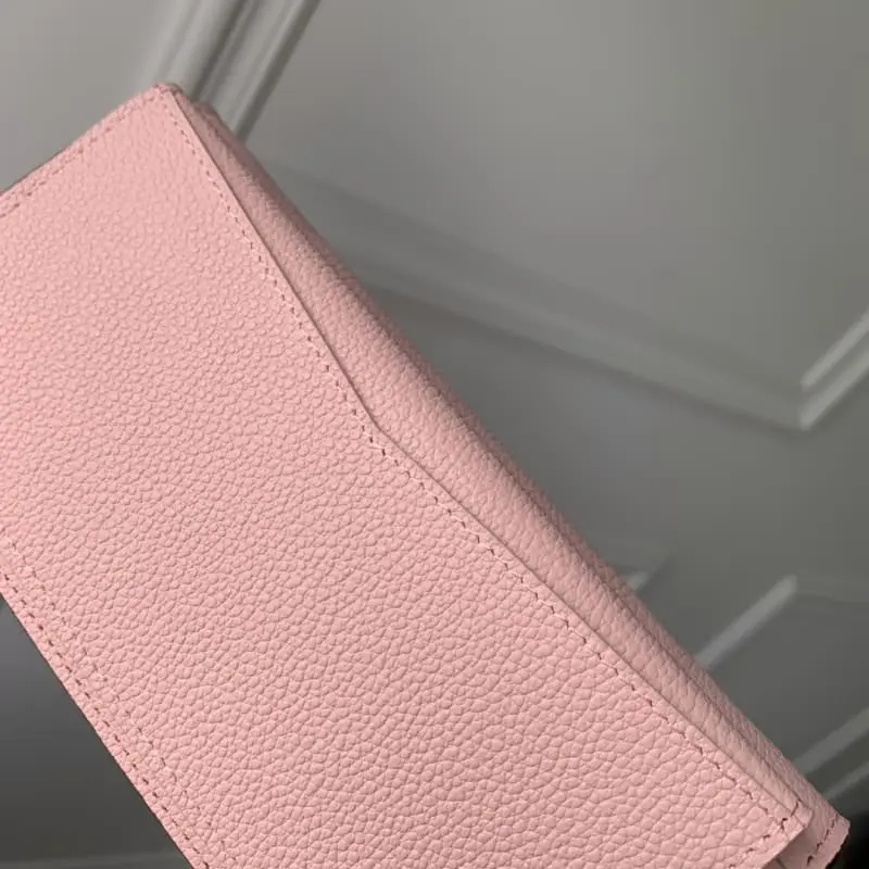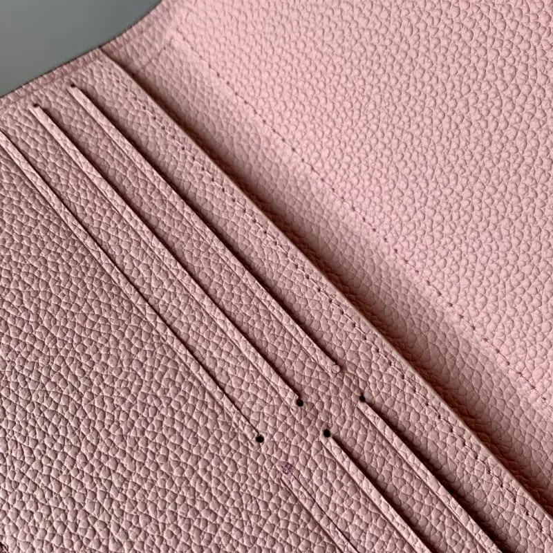 M60699 Pink long trifold wallet with multiple card slots! The wallet is made of soft Monogram leather with brightly colored lining. It is extremely elegant with multiple pockets and eye-catching shape, giving it an irresistible charm.
