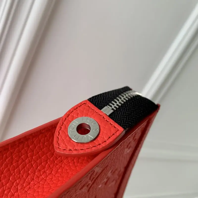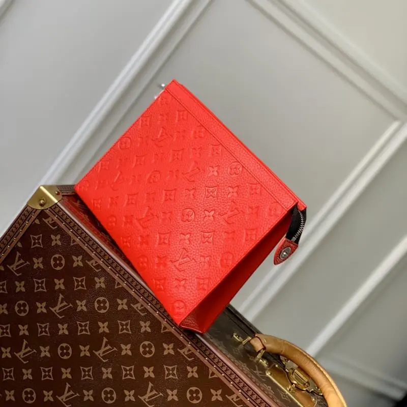 M61692 Embossed red! Chip version of the Pochette Voyage clutch This Pochette Voyage clutch is made of Taga lychee leather with LV letters on the corner and shiny metal parts. The zippered card slot and main compartment can accommodate small items. Detailed features! 27 x 21 x 6 cm, (length x height x width)