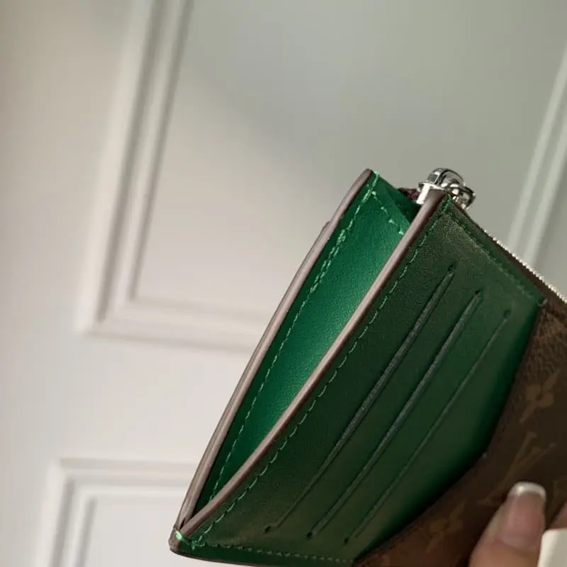 M64038 Green COIN card holder Made from Lbag’s iconic Taiga leather, the Coin card holder is sleek and neat, ideal for safely storing change and banknotes. It has multiple credit card slots and a banknote compartment with a silver zipper coin pocket. 8??14.5??1cm