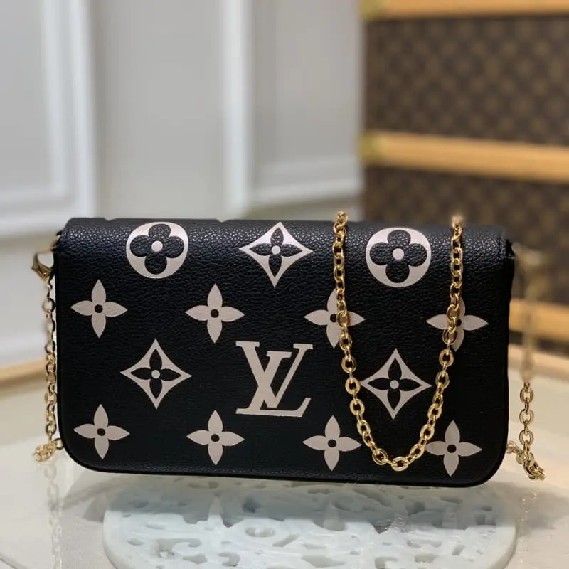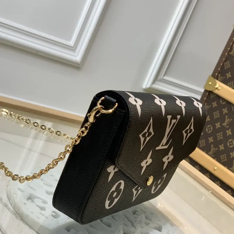 M69977 Black This Pochette F??licie chain bag is made of Monogram Empreinte leather with a Monogram print. Its envelope-style configuration includes a detachable inner pocket. Fasten the chain to complete the conversion between a clutch and a shoulder bag. Detailed features 21.0 x 12.0 x 3.0 cm (length x height x width) Monogram Empreinte embossed soft grain cowhide fabric lining metal parts detachable metal chain shoulder or crossbody snap closure large compartment inner patch pocket detachable zipper pocket detachable patch pocket with card compartment chain: detachable chain half length: 53.0 cm