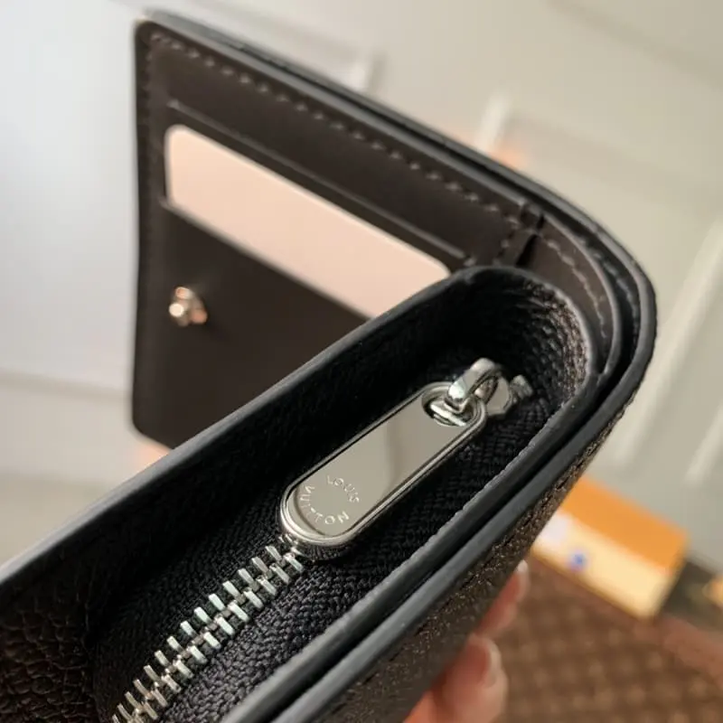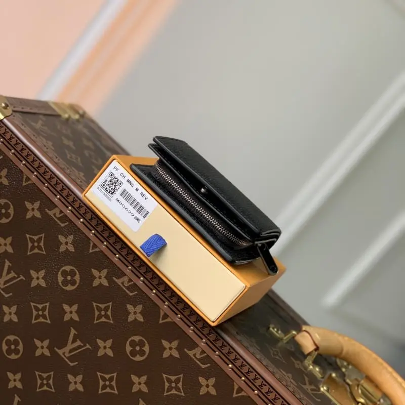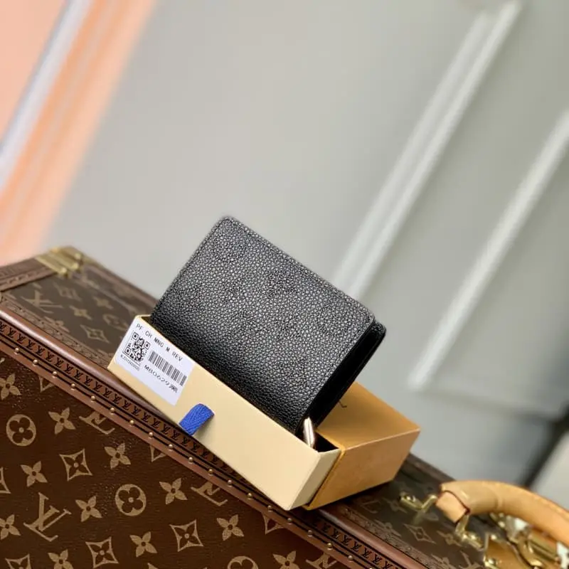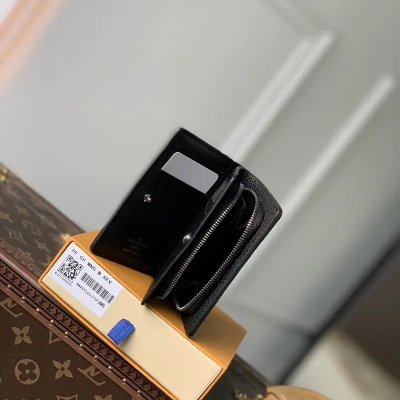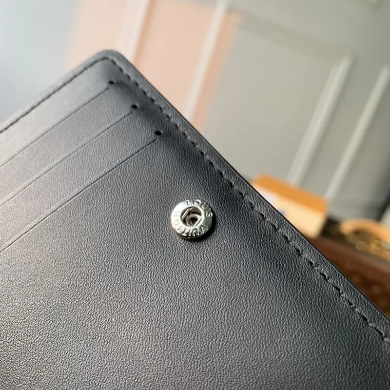 M80629 Black Made of soft Mahina leather with the iconic Monogram pattern, the elegant and compact design is the charming “Portefeuille Claire”. There is a zippered coin pocket on one side and 6 card slots on the other. There is a compartment on the back for unfolded banknotes. Size: 11??8.5??3.5