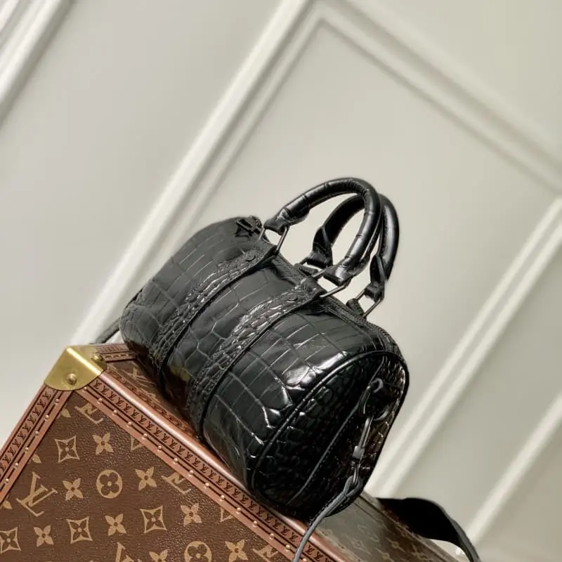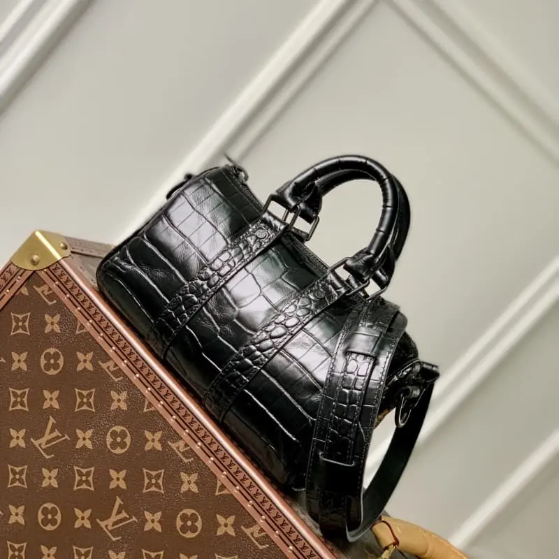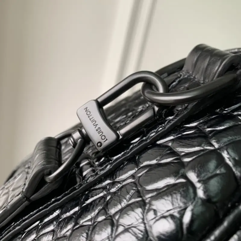 M80641 Black Crocodile Pattern Crocodile Pattern Men’s Bag Pillow Bag Series This Keepall 25 handbag is made of Monogram Eclipse Reverse canvas. The reinforced strap continues the iconic element of the Keepall series. The zipper closure allows personal items to be carried safely. Size: 25.0 x 15.0 x 11.0 cm
