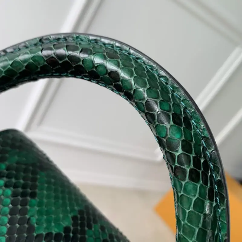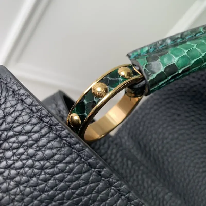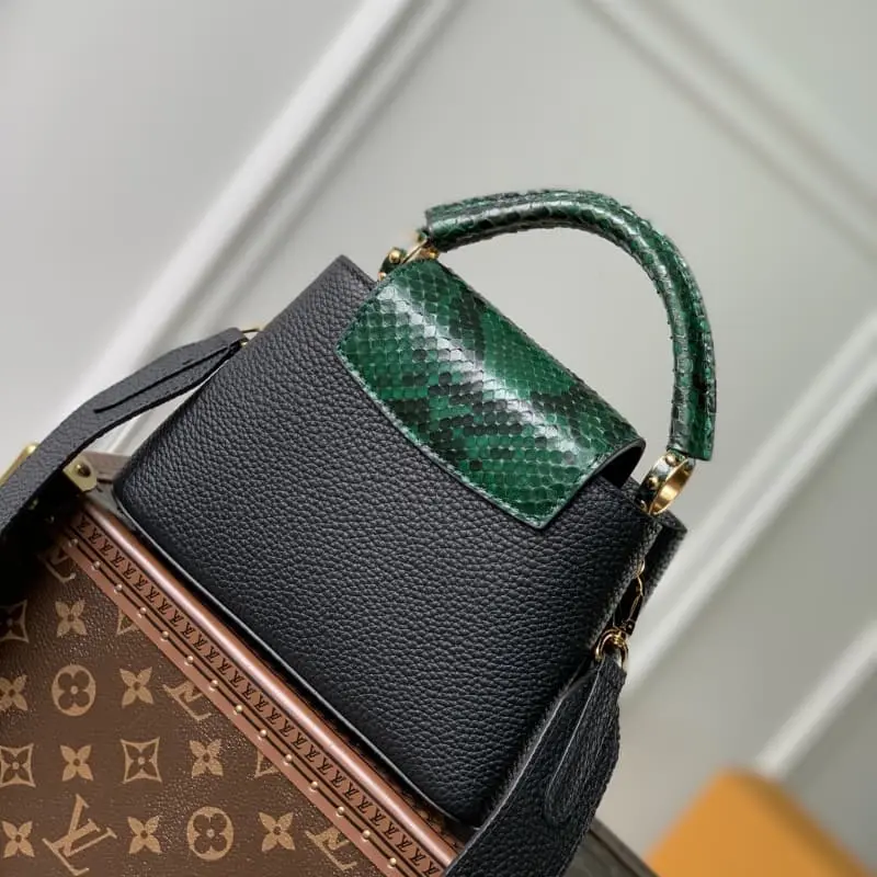 [Model M80931 81310. Black with green python mini] Capucines mini handbag French imported calfskin, shiny metal accessories, unique Capucines flap can be put inside the bag to display the letter logo, or turned out to show the Monogram Flower pattern size: 21x14x8 cm