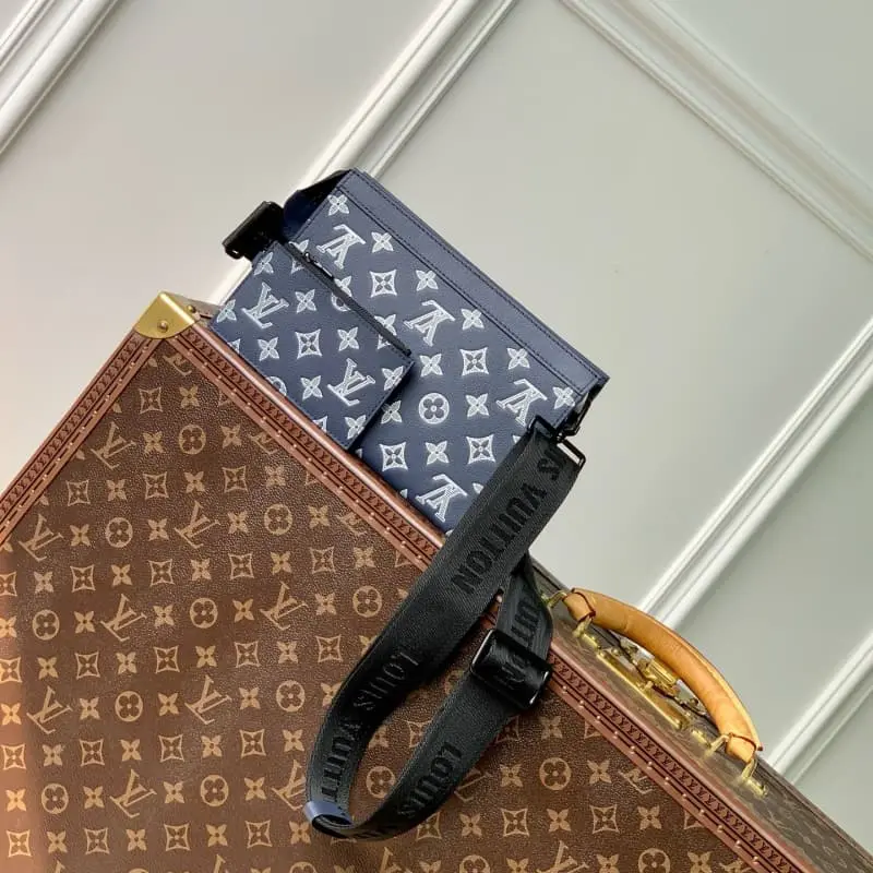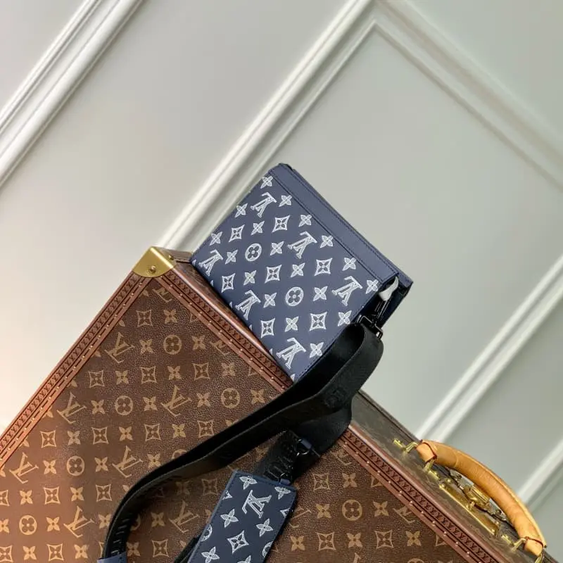 M81115 Elegant blue seasonal new model, GASTON mini handbag, this Gaston mini handbag uses Monogram Shadow cowhide leather to interpret urban style with contrasting Monogram pattern. The detachable and adjustable fabric shoulder strap is convenient for shoulder carrying and is equipped with a delicate D-ring and a detachable card holder for contactless payment. 22 x 14.5 x 4.5 cm (length x height x width).