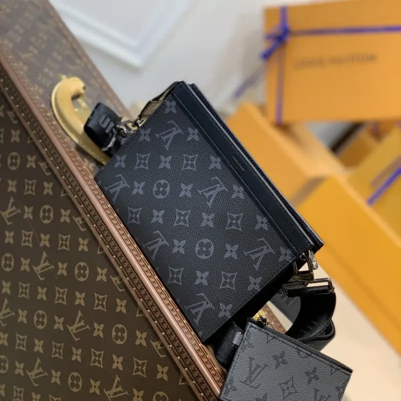 Original M81124 The Gaston wearable wallet is inspired by the House’s Pochette Voyage. Made from Monogram Eclipse Reverse canvas it has a removable and adjustable textile strap with a detachable card holder attached to it ideal for contactless payments or commuter cards. The Gaston is the perfect size for everyday essentials such as smartphones. Dimensions: 22.0 x 14.5 x 4.5 cm (L x H x W)