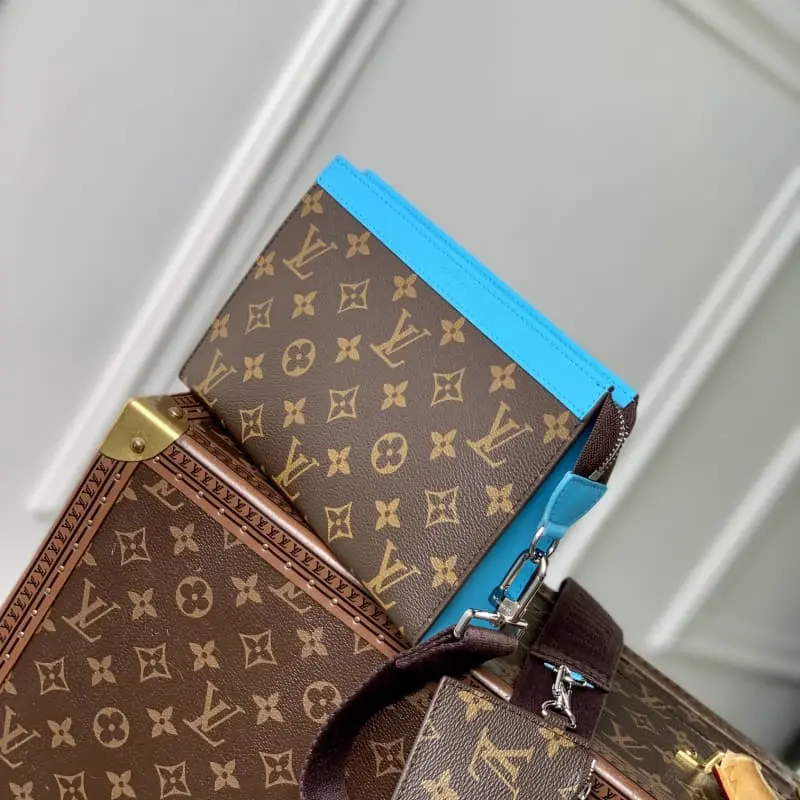 M81124 Blue Alpha Wearable Wallet with Monogram Eclipse canvas and leather trim can accommodate mobile phones and small wallets. Wide mouth design and side accordion structure for easy access Adjustable shoulder strap for multiple carrying methods. Detailed Features 18.5 x 11 x 6.5cm